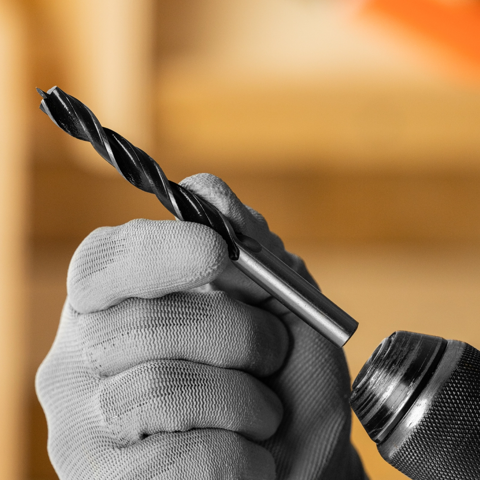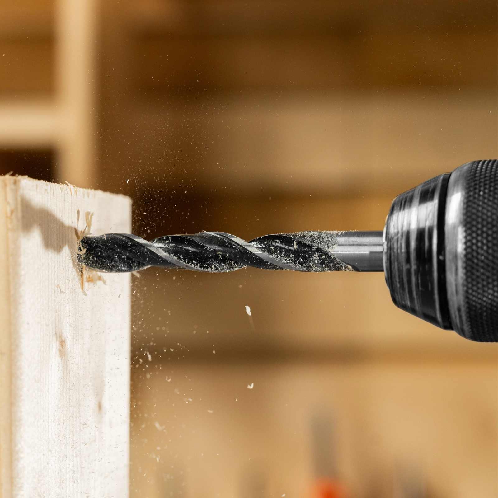 Благодаря винтовой конструкции всех элементов стружка эффективно удаляется из рабочей зоны, и сверла не застревают в древесине.