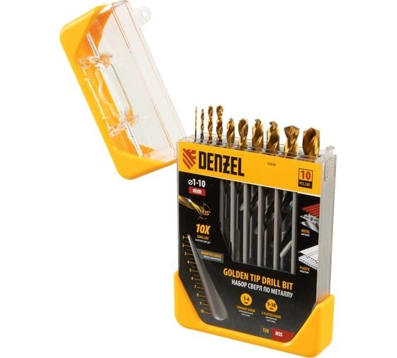ПроизводителиНабор сверл по металлу 1.0-10.0 мм, HSS-TIN, 10 шт. (72316) Denzel