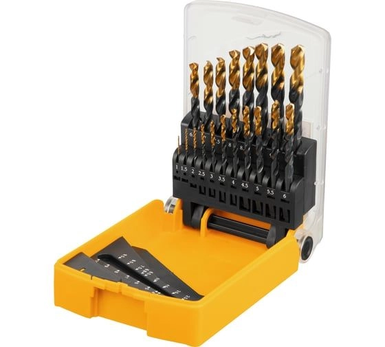 ПроизводителиНабор сверл по металлу 1.0-10.0 мм, HSS-TIN, 19 шт. (72321) Denzel