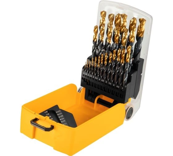 ПроизводителиНабор сверл по металлу 1.0-13.0 мм, HSS-TIN, 25 шт. (72323) Denzel