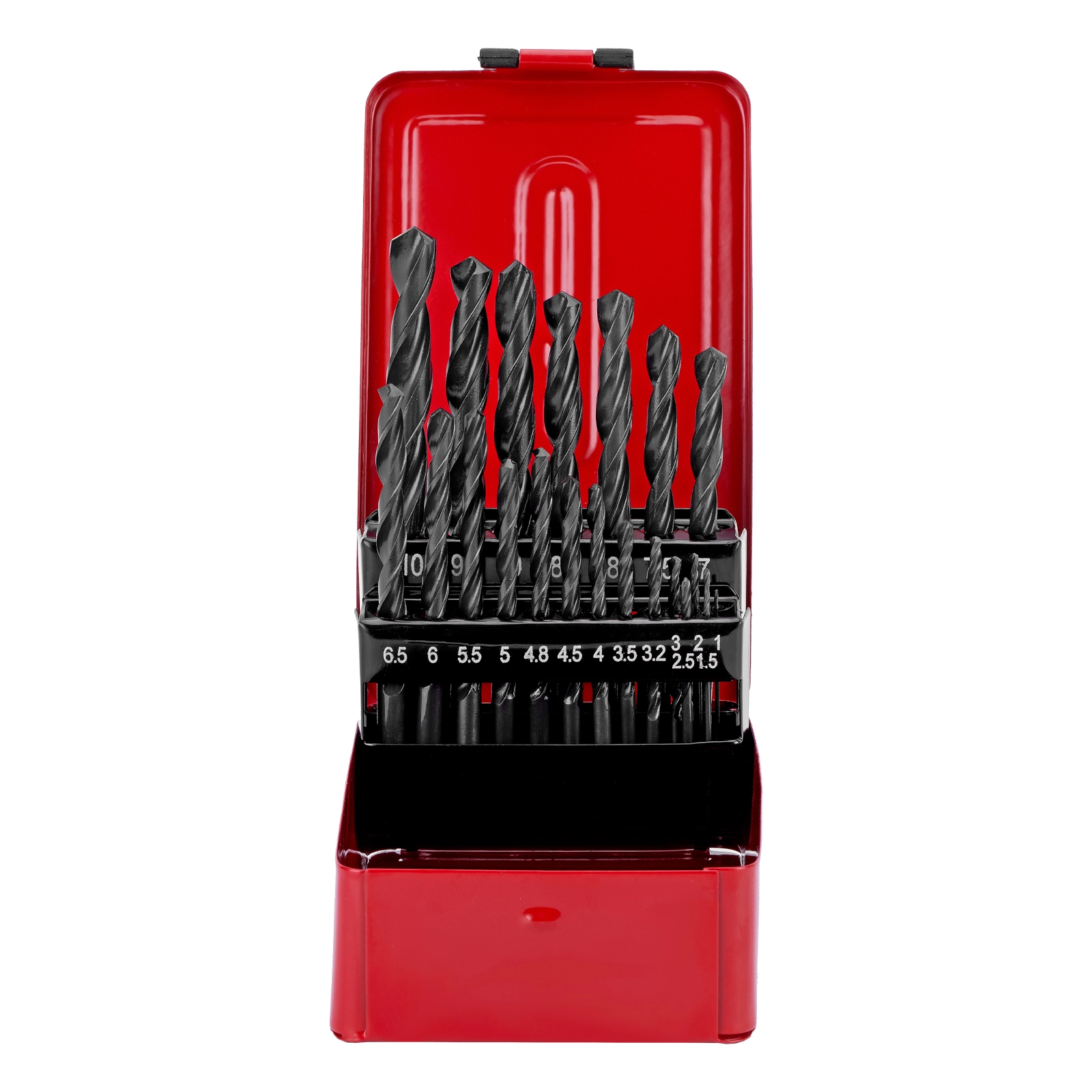 Набор Sparta 723755 включает 21 сверло по металлу диаметром от 1 до 10 мм (через 0,5, 3,2, 4,8 мм), из стали HSS, с цилиндрическим хвостовиком, в металлическом боксе.