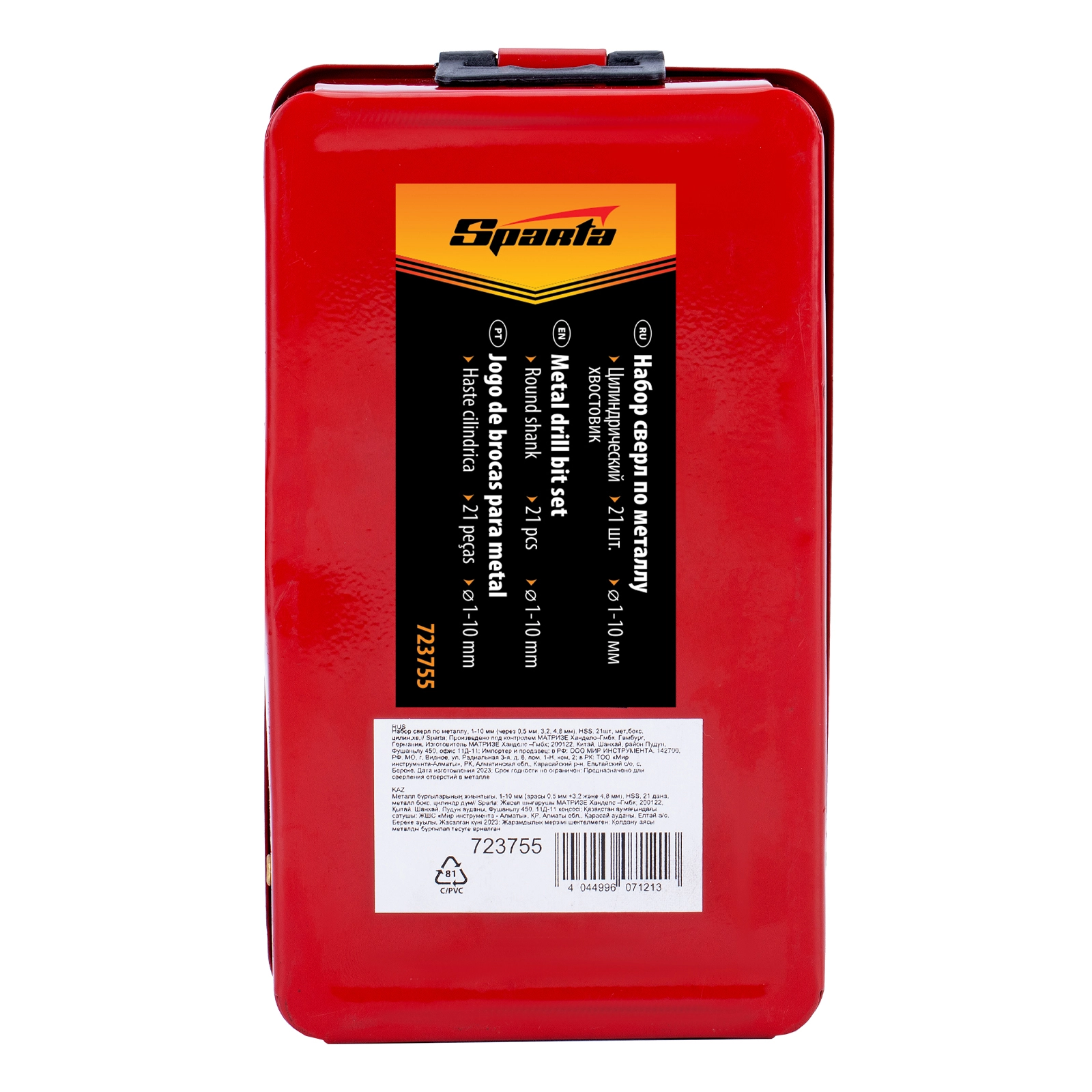 ПроизводителиНабор сверл по металлу, 1-10 мм (через 0,5 мм, 3,2, 4,8 мм), HSS, 21шт, мет.бокс (723755) SPARTA