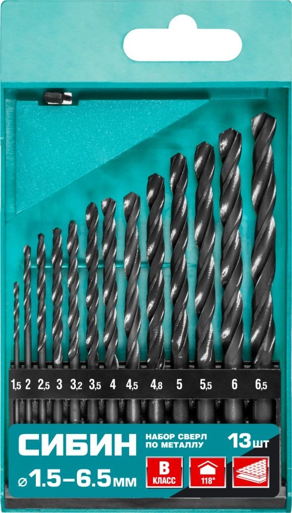 ПроизводителиНабор сверл по металлу 1.5-6.5 мм, HSS, 13шт., класс В (29610-H13) СИБИН