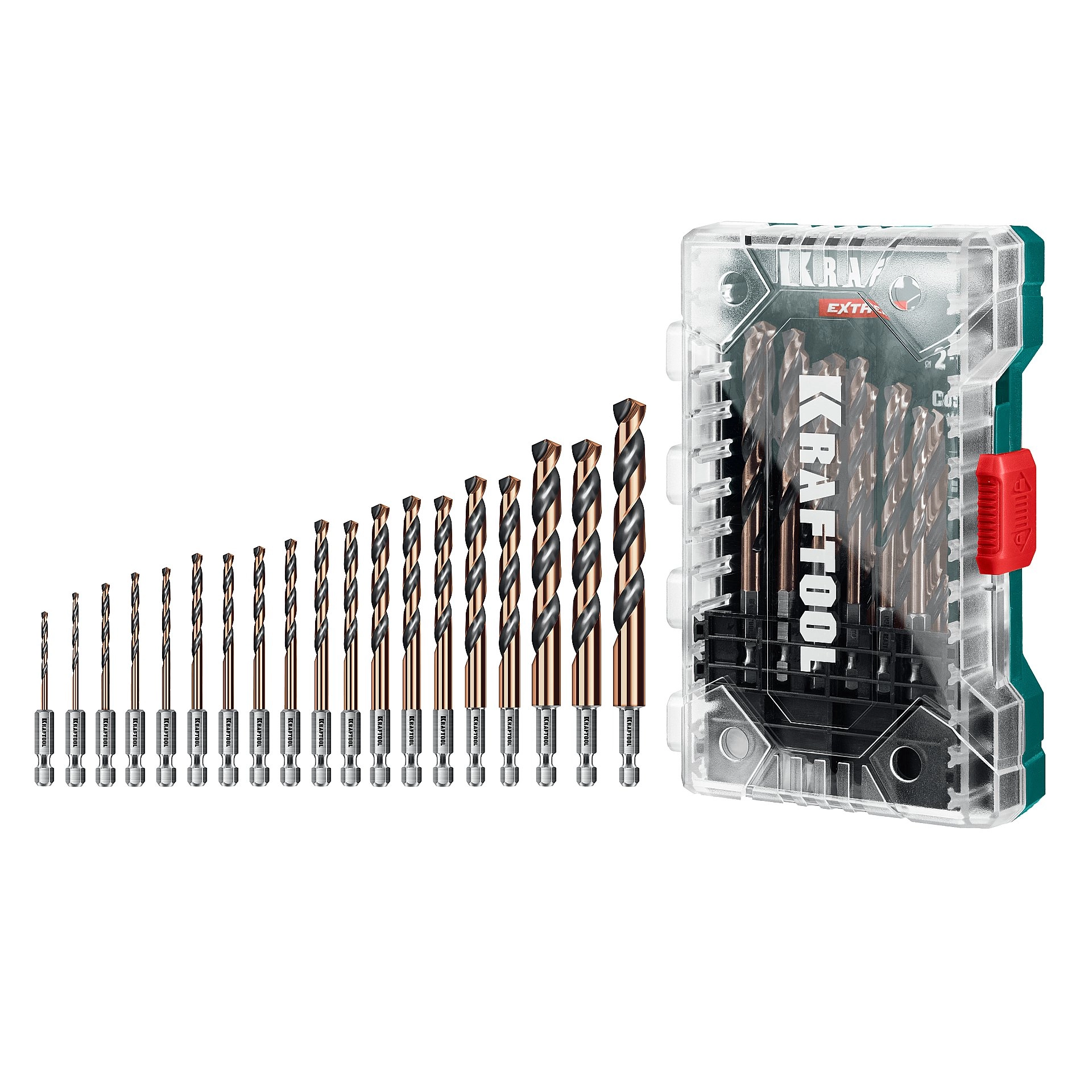 ПроизводителиНабор сверл по металлу 2.0-10.0 мм, HSS, 19шт., хвост. НЕХ 1/4", класс A1 (29652-H19) KRAFTOOL
