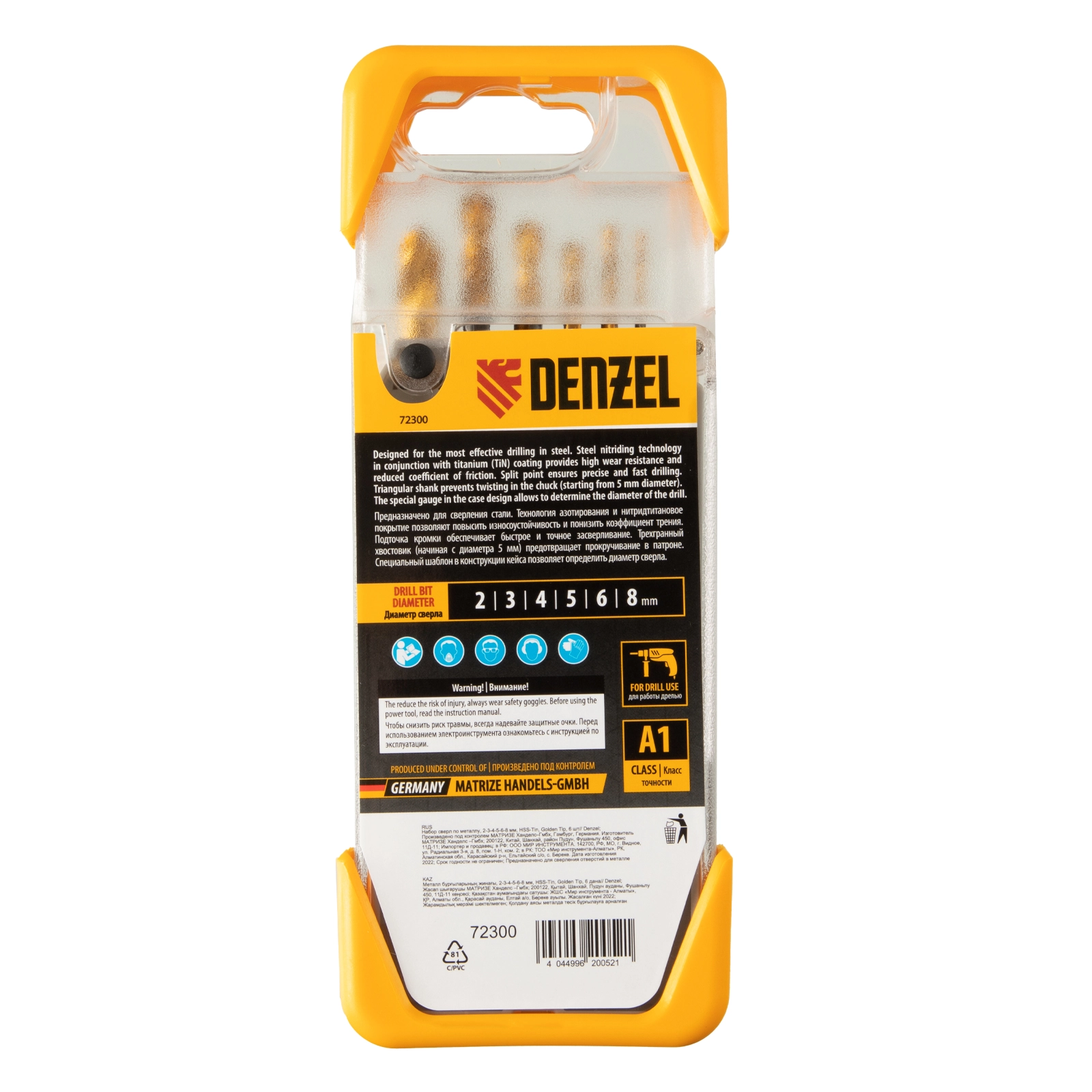 ПроизводителиНабор сверл по металлу, 2-3-4-5-6-8 мм, HSS-TiN, Golden Tip, 6 шт (72300) DENZEL
