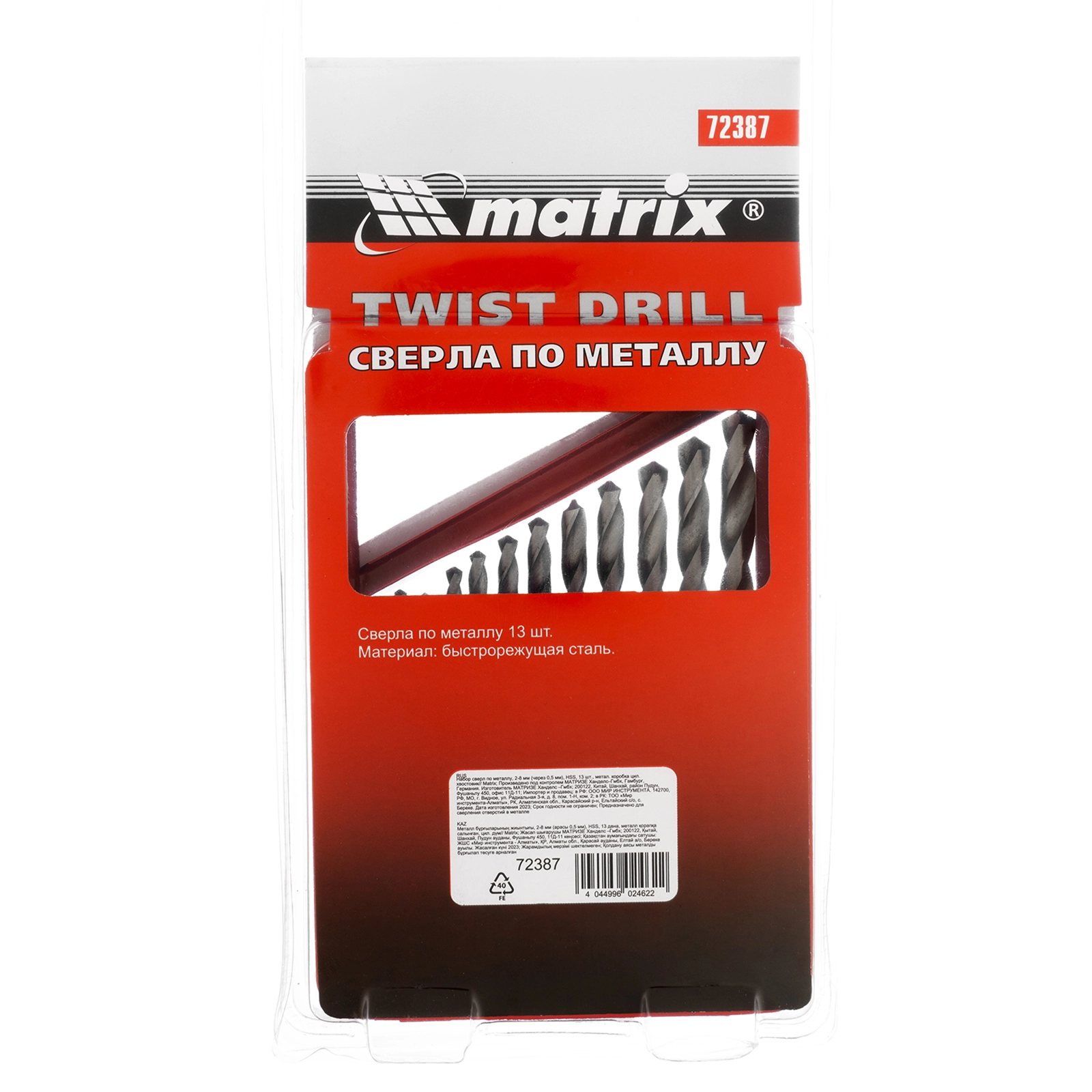 Набор сверл Matrix 72387 из стали HSS с цилиндрическим хвостовиком, 13 шт.