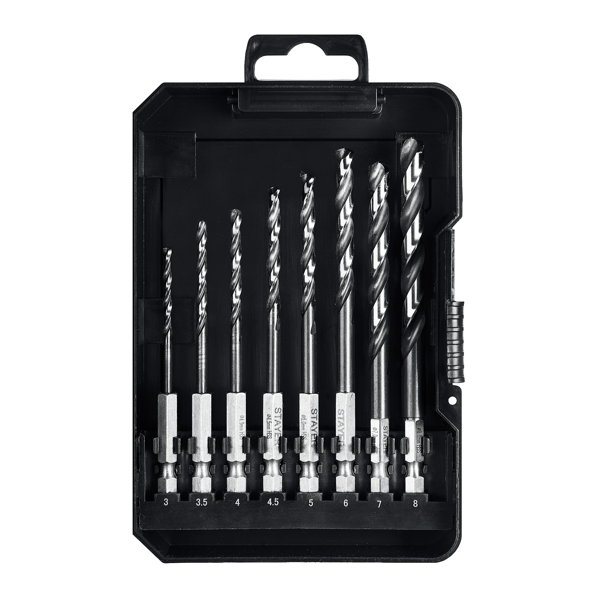 ПроизводителиНабор сверл по металлу 3.0-8.0 мм, HSS, 8шт., хвост. НЕХ 1/4", класс A1 (29603-H8) STAYER