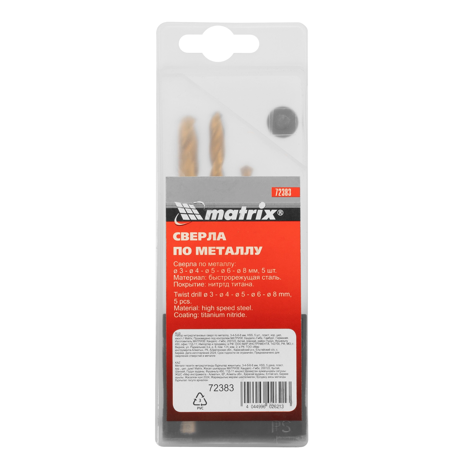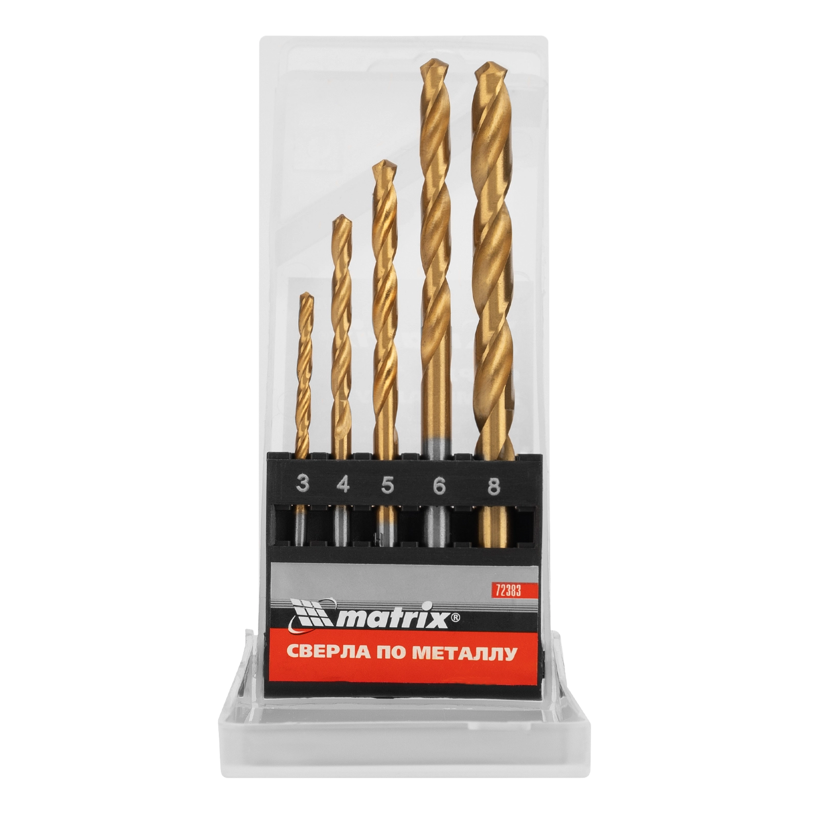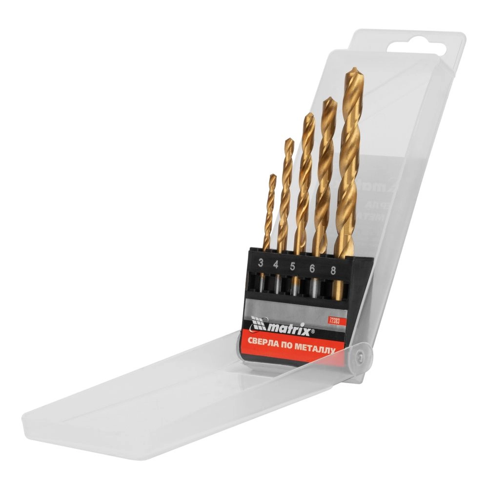 ПроизводителиНабор сверл по металлу, 3-4-5-6-8 мм, TiN, HSS, 5 шт., пласт. кор. (72383) MATRIX