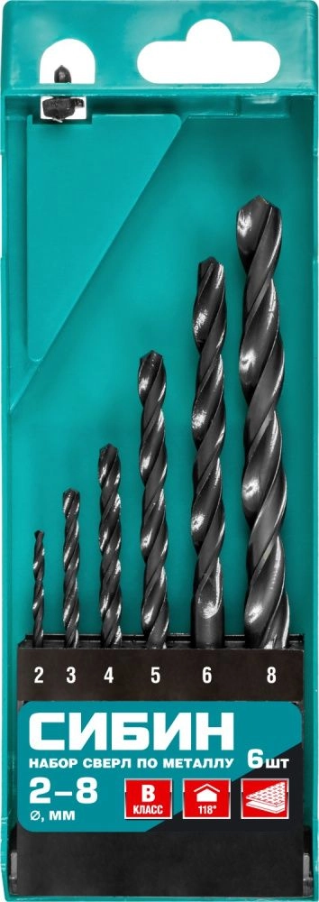ПроизводителиНабор сверл по металлу 2.0-8.0 мм, HSS, 6шт., класс В (29610-H6) СИБИН