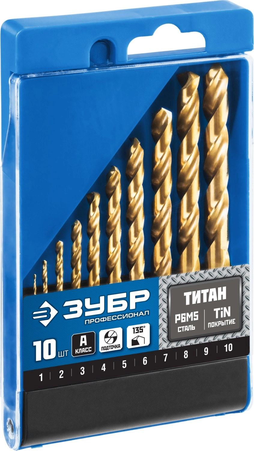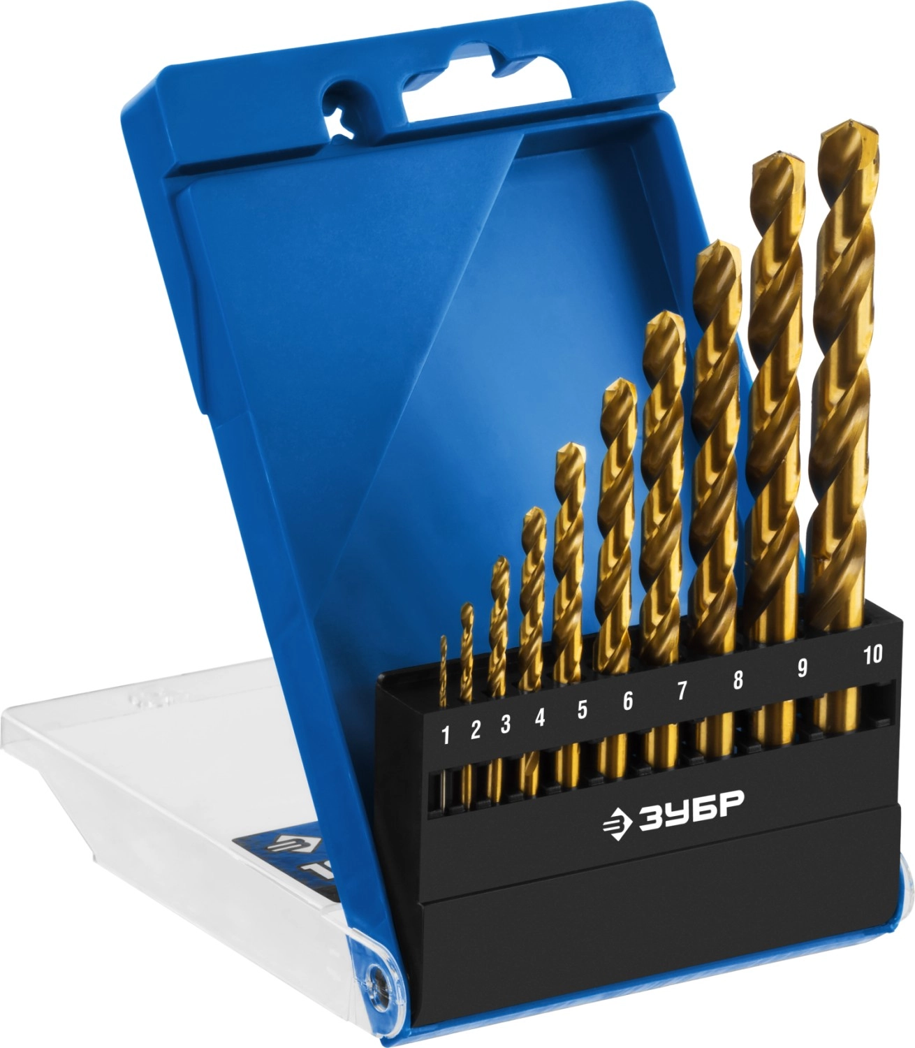 ПроизводителиНабор сверл по металлу 1.0-10.0 мм, HSS-TiN, 10шт., класс А "ТИТАН" (29615-H10) ЗУБР