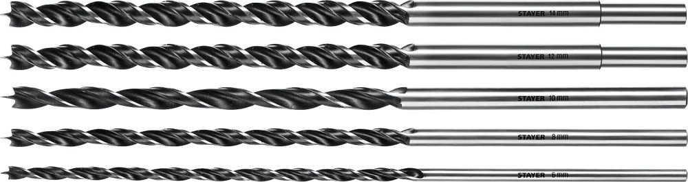 ПроизводителиНабор сверл спиральных по дереву 6-8-10-12-14x300мм, 5шт. "Maxdrill" (2943-300-H5_z01) STAYER