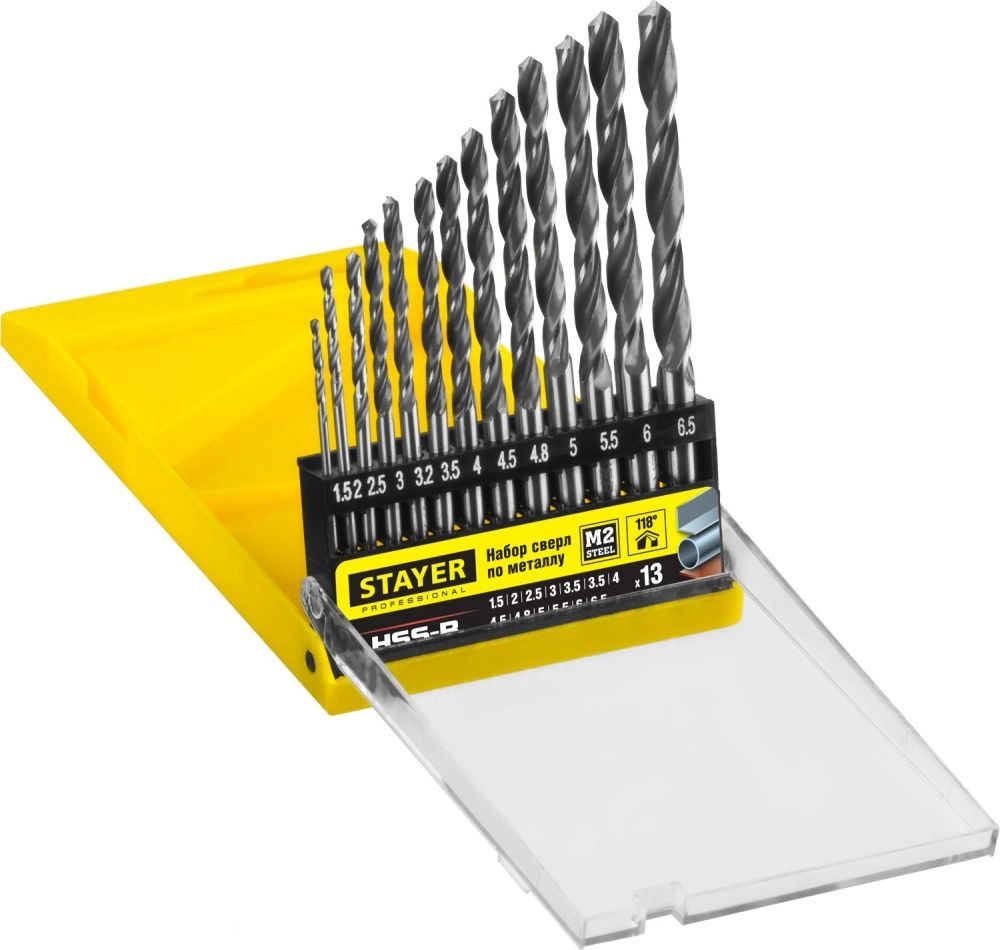 ПроизводителиНабор сверл по металлу 1.5-6.5 мм, HSS-R, 13шт. "Professional" (29602-H13_z01) STAYER