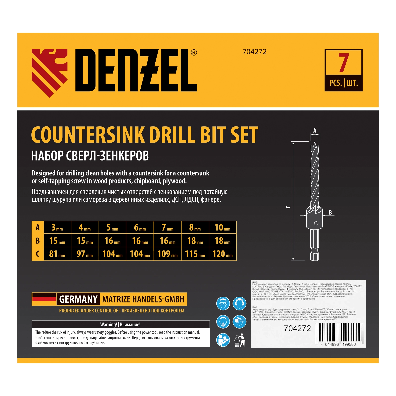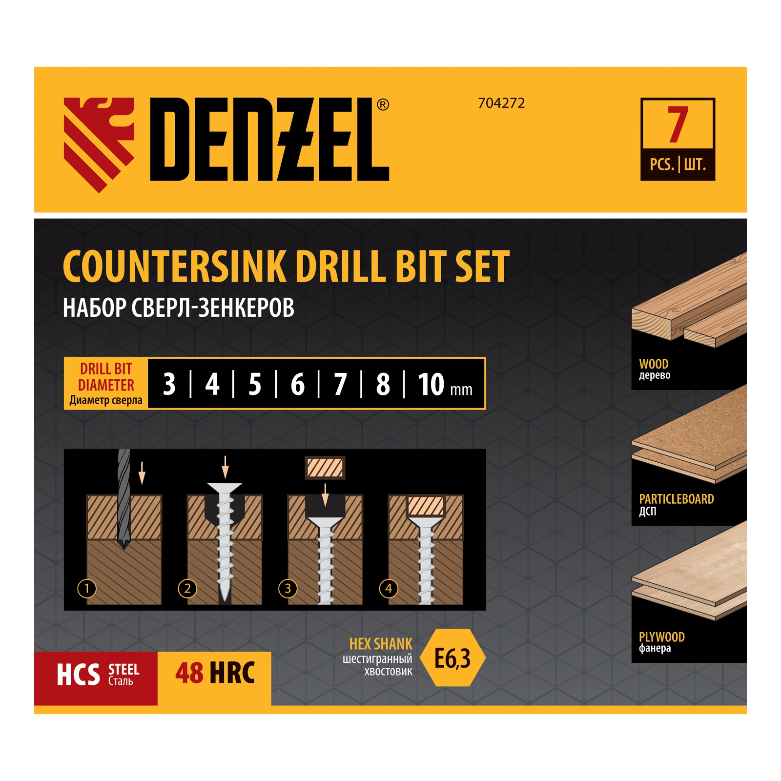 ПроизводителиНабор сверл зенкеров по дереву, 3-10 мм, 7 шт (704272) MATRIX