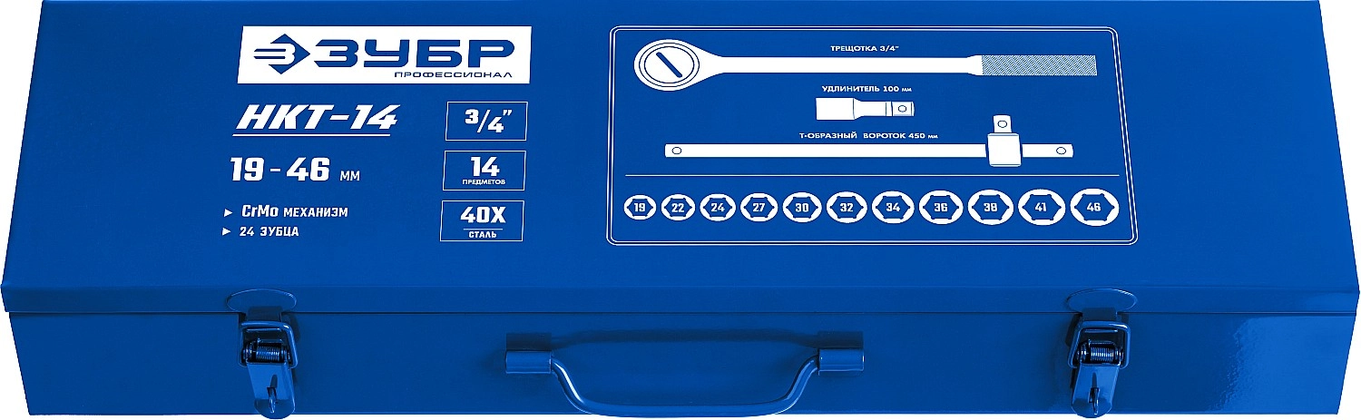 Набор головок 3/4" 19-46мм, 14пр.., хромир., мет.чем "Профессионал" (27660-H14) ЗУБР
