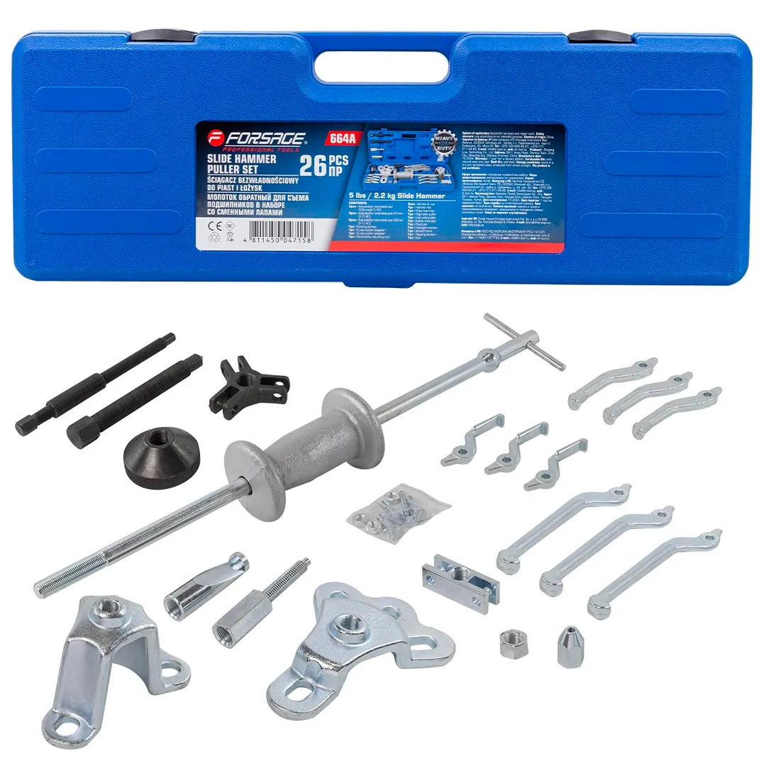 ПроизводителиНабор универсальный (съемник подшипников с обратным молотком) 26пр. (F-664A) Forsage