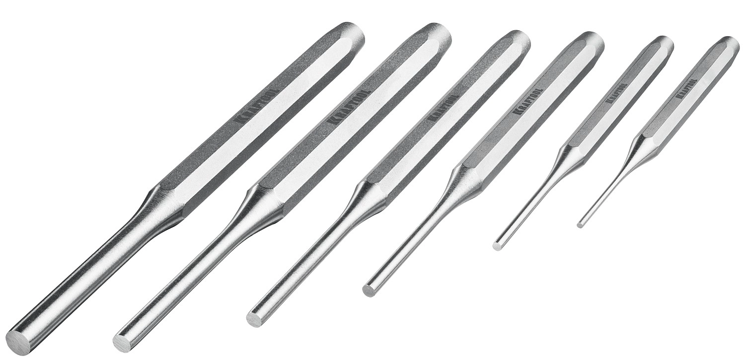 Набор выколоток KRAFTOOL GRAND-6 21075-H6, предназначен для проведения ударных операций в области столярно-слесарных работ. Изделие обеспечивает пробивку отверстий, создание мелких насечек в деталях и заготовках из различных материалов. Выколотки произведены из хромомолибденой стали, выдерживают повышеннные ударные нагрузки.