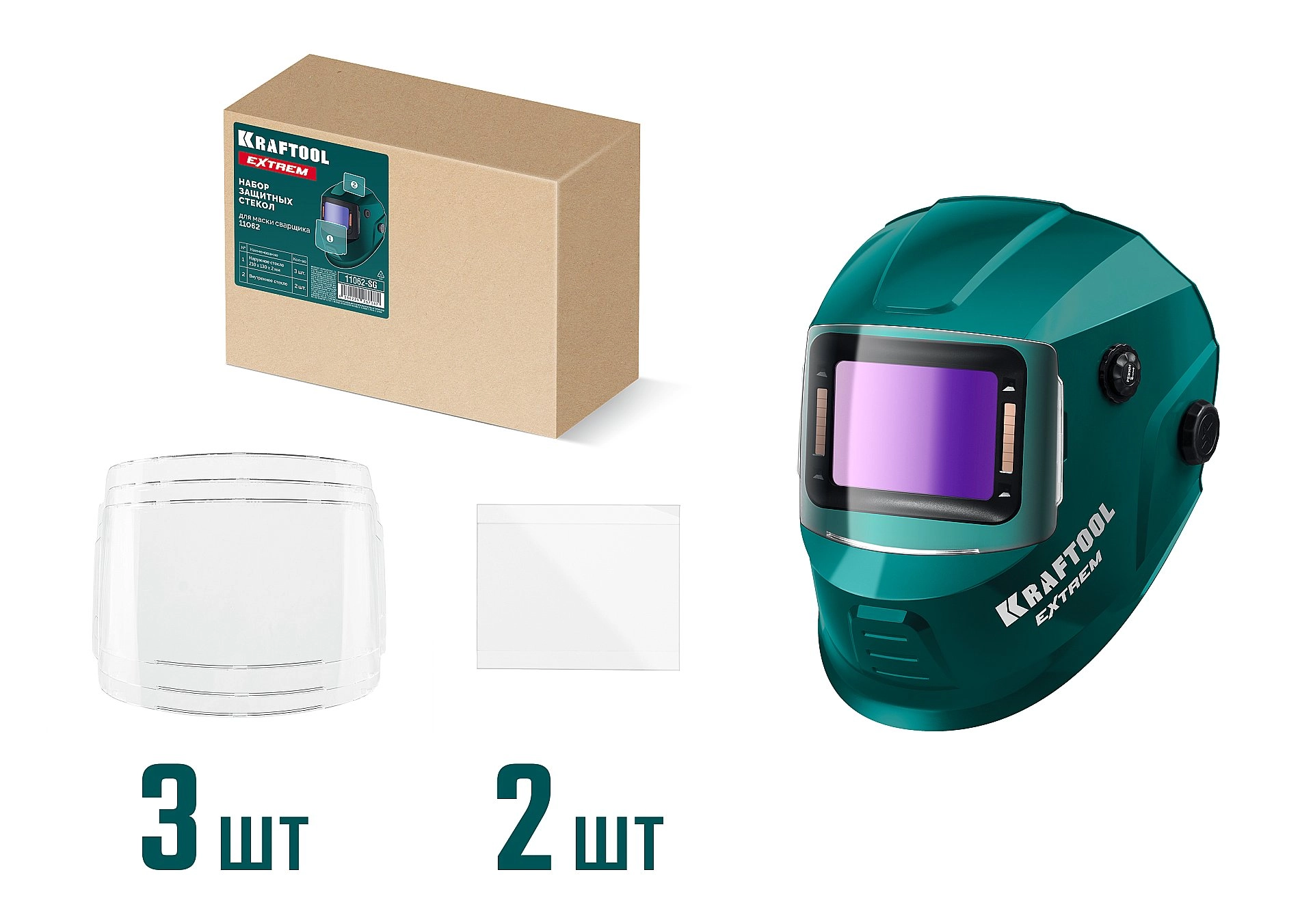 ПроизводителиНабор защитных стёкол для маски сварщика EXTREM мод.11062 (11062-SG) KRAFTOOL