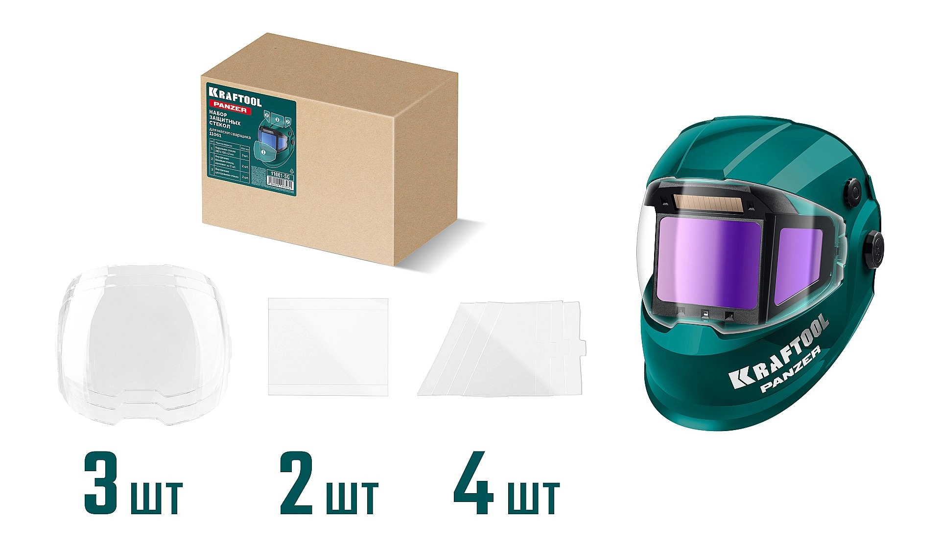 ПроизводителиНабор защитных стёкол для маски сварщика PANZER мод.11061 (11061-SG) KRAFTOOL