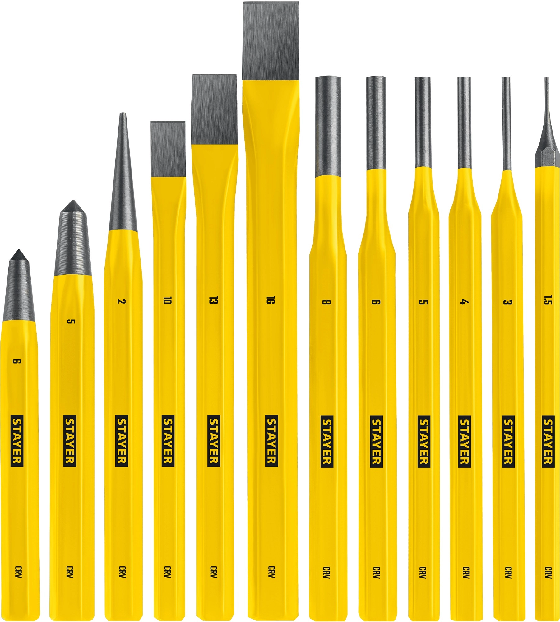 Набор высококачественных зубил и кернеров.
