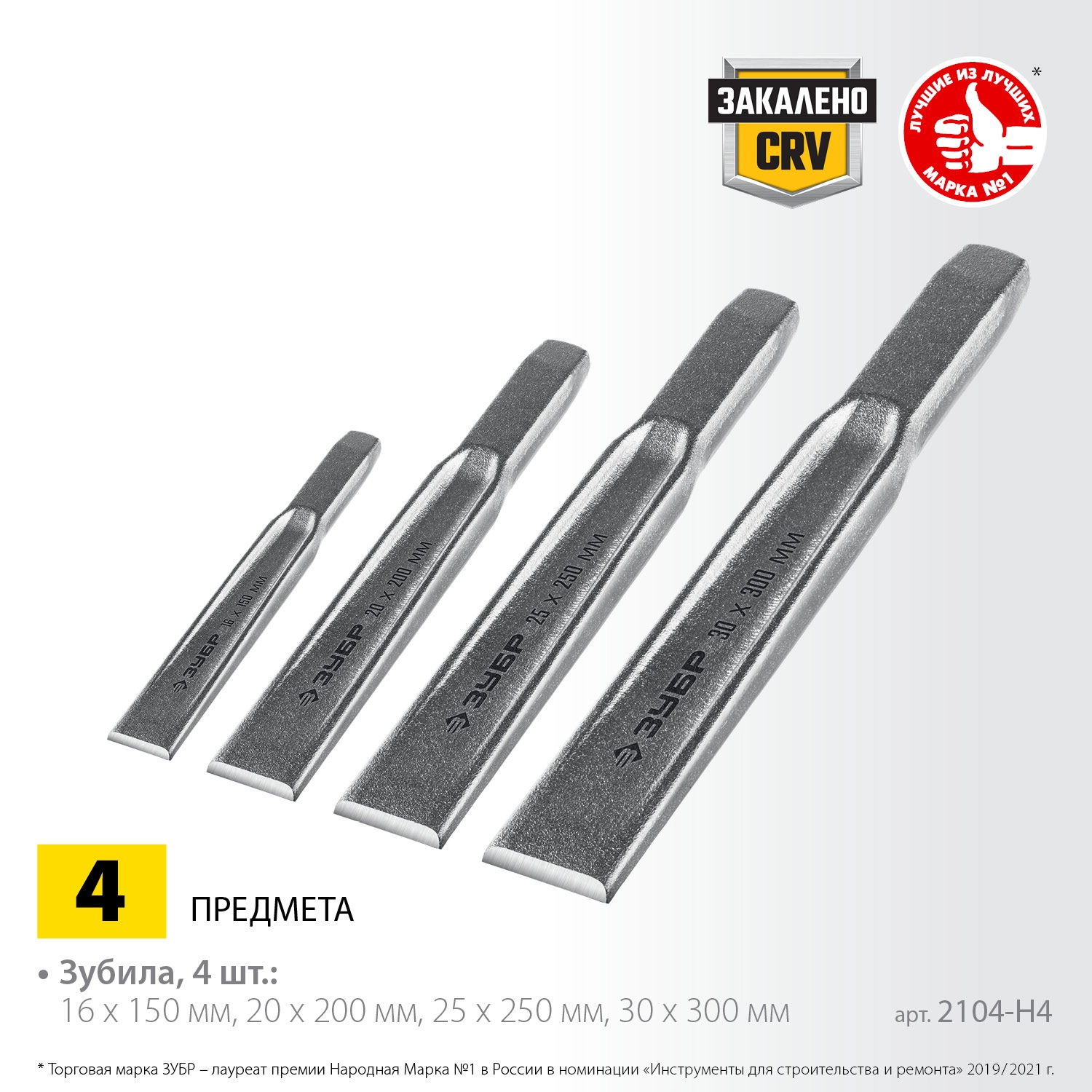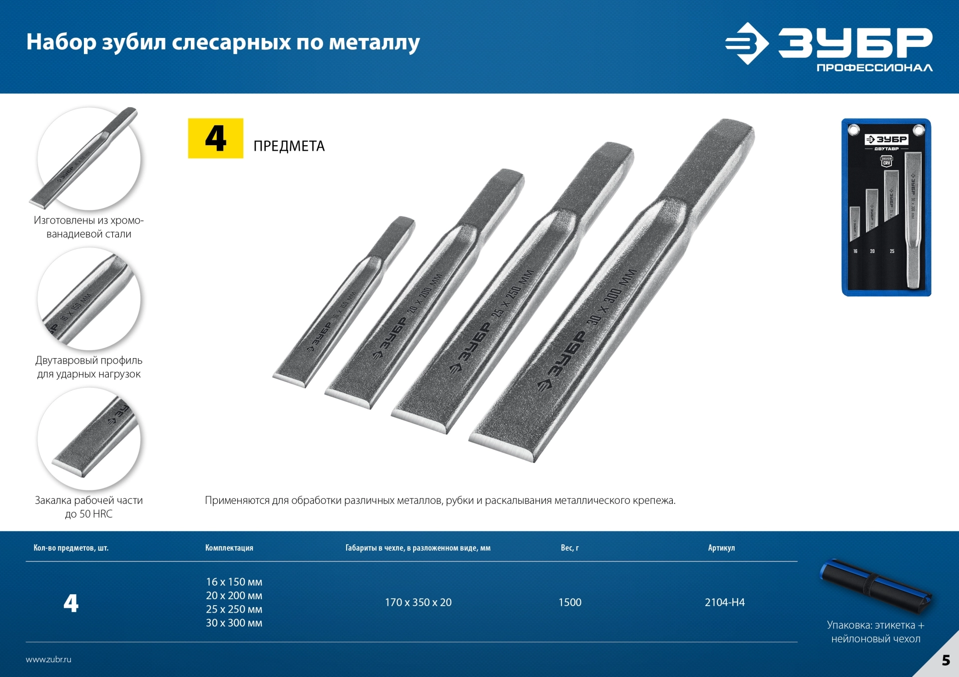 ПроизводителиНабор зубил слесарных по металлу, 4шт. "Двутавр" (2104-H4) ЗУБР