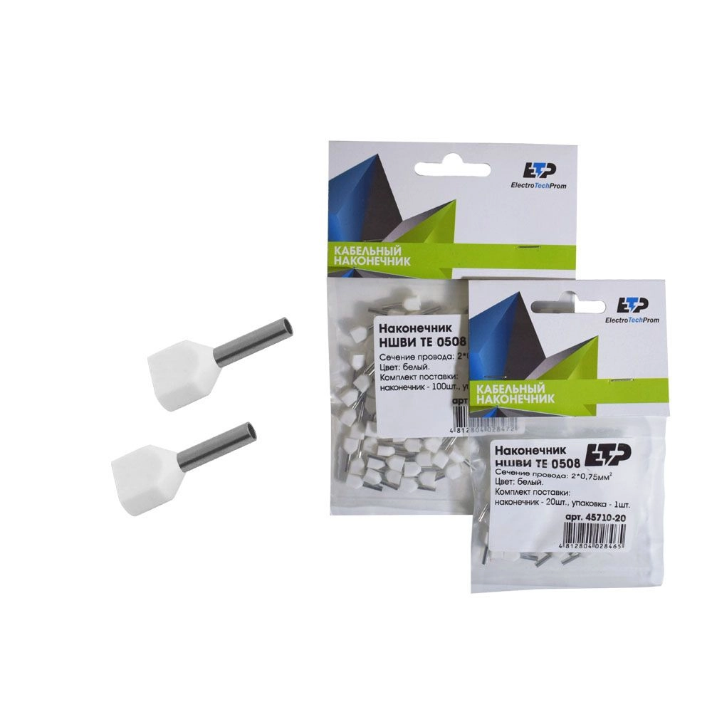 ПроизводителиНаконечник штыревой втулочный изолированный НШвИ(2) 0508 2х0,5мм2 (уп/100шт) 45710-100 ETP