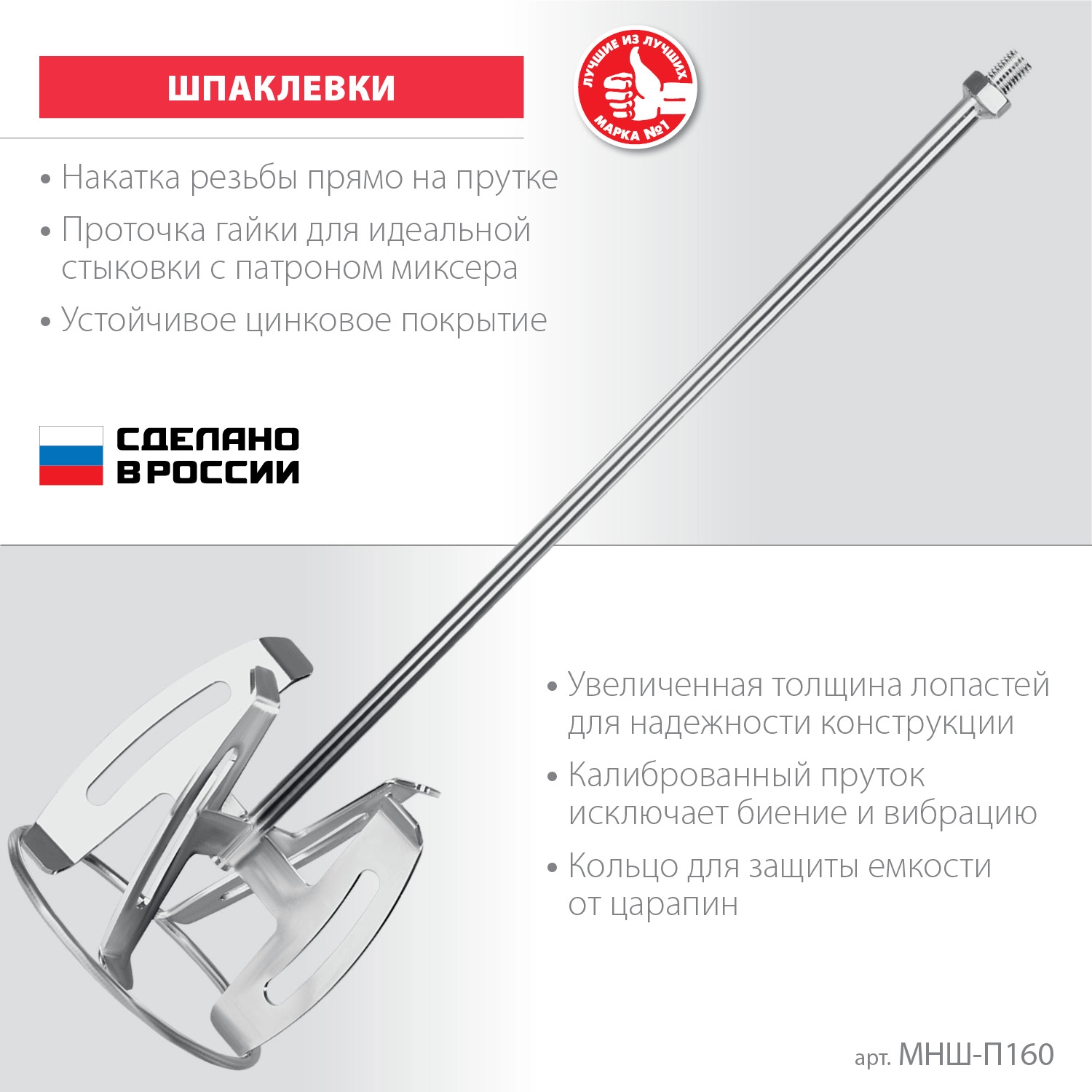 Насадка с лопастями для перемешивания шпаклевок. Используется совместно с ручными миксерами ЗУБР МР-1050-1, МР-1100, МР-1400-2 и МР-1600-2. Не поддается коррозии и не деформируется даже при эксплуатации в тяжелых условиях. Сделано в России