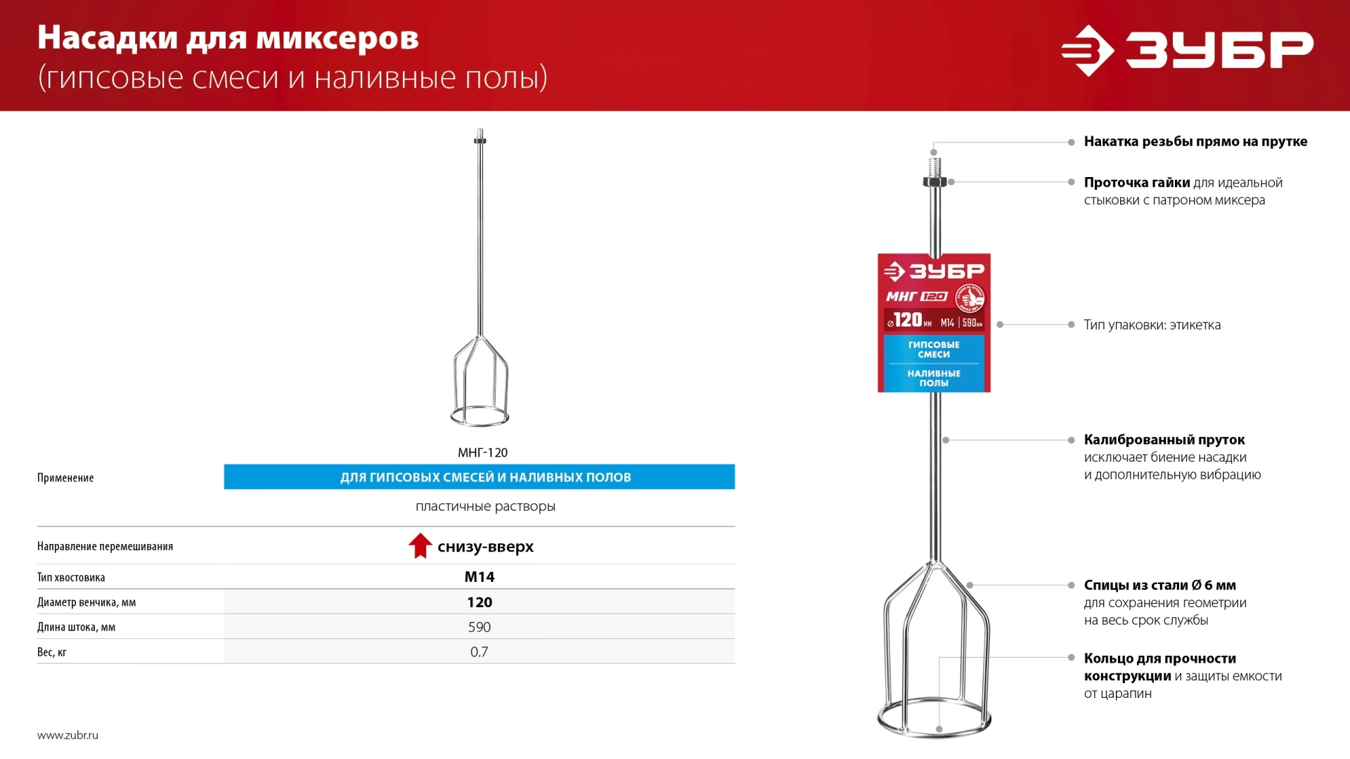 Насадка с лопастями для перемешивания гипсовых смесей и наливных полов. Используется совместно с ручными миксерами ЗУБР ЗМР-1200Э-1, МР-1050-1, МР-1100, МР-1400-2 и МР-1600-2. Сделано в России