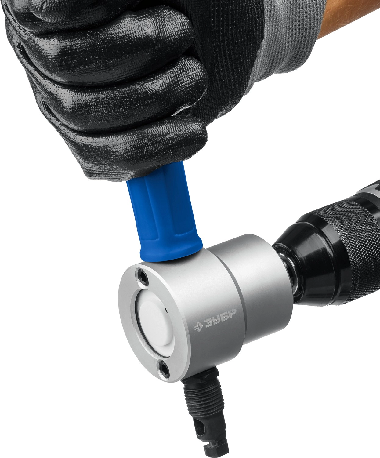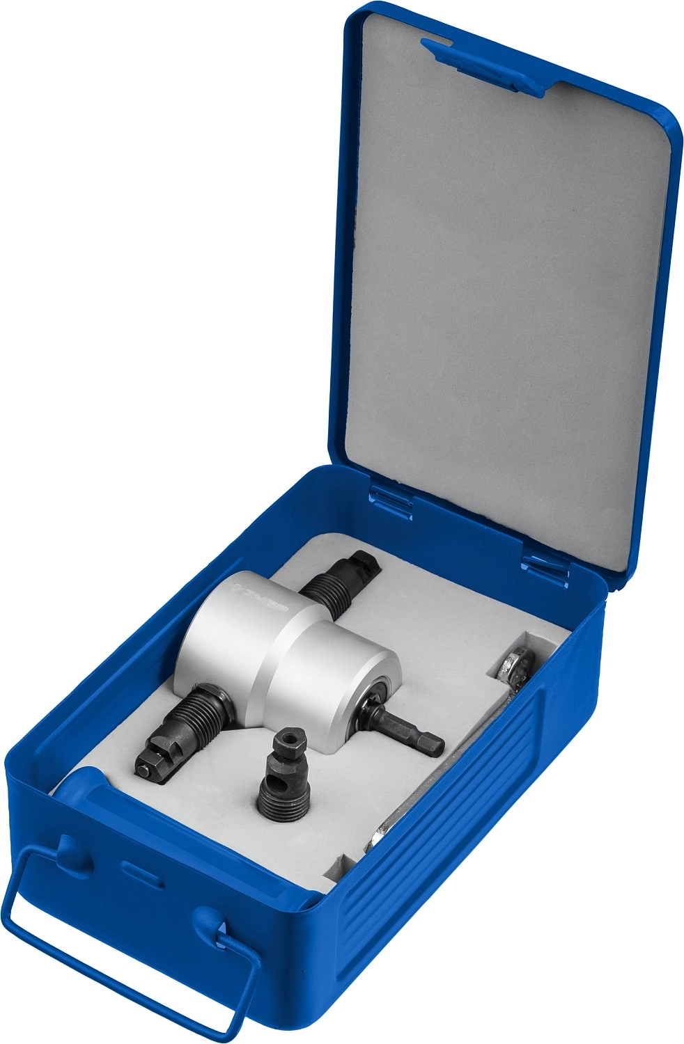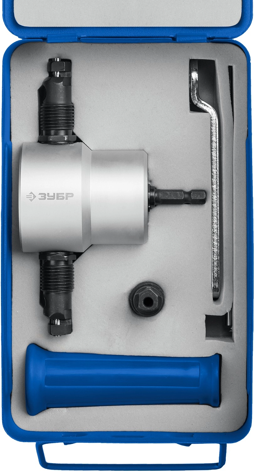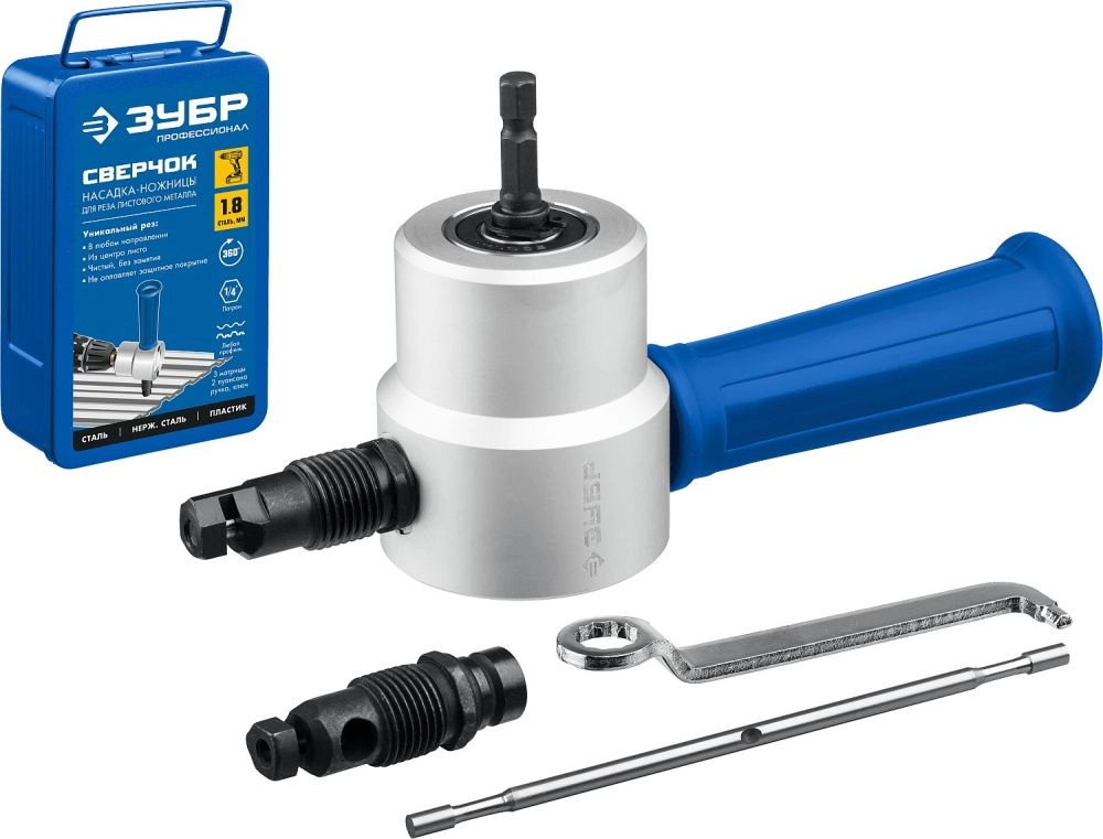 ПроизводителиНасадка-ножницы для резки листового металла, до 2мм + запчасти, в кейсе "Сверчок" (23294) ЗУБР