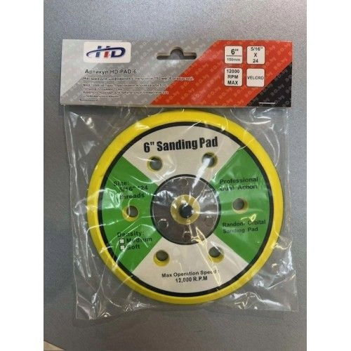 ПроизводителиНасадка резиновая шлифовальная с 6 отверстиями 150мм 5/16" (8мм) с липучкой (HD-PAD-6) H-D