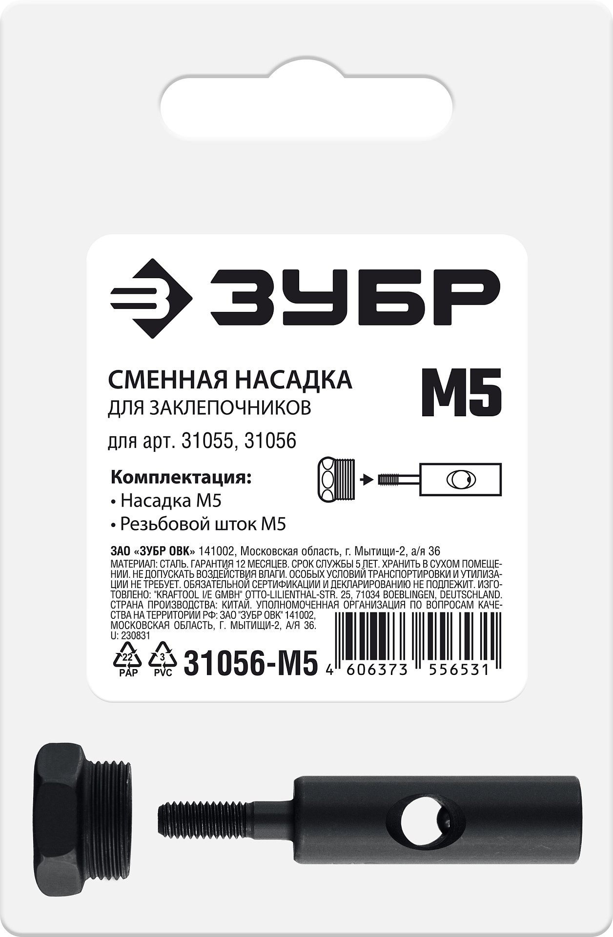 ПроизводителиНасадка сменная М5 для заклепочников 31055, 31056 (31056-M5) ЗУБР