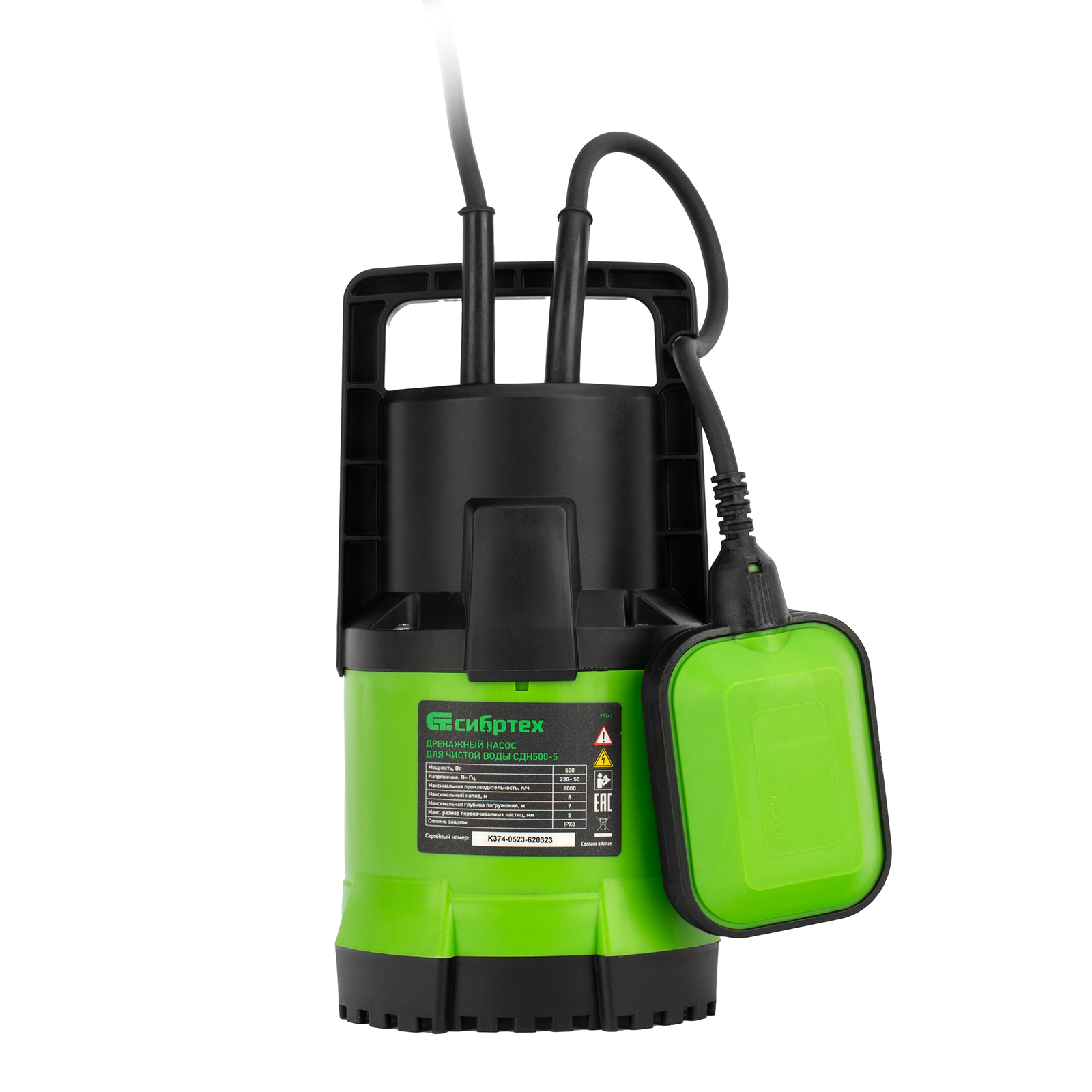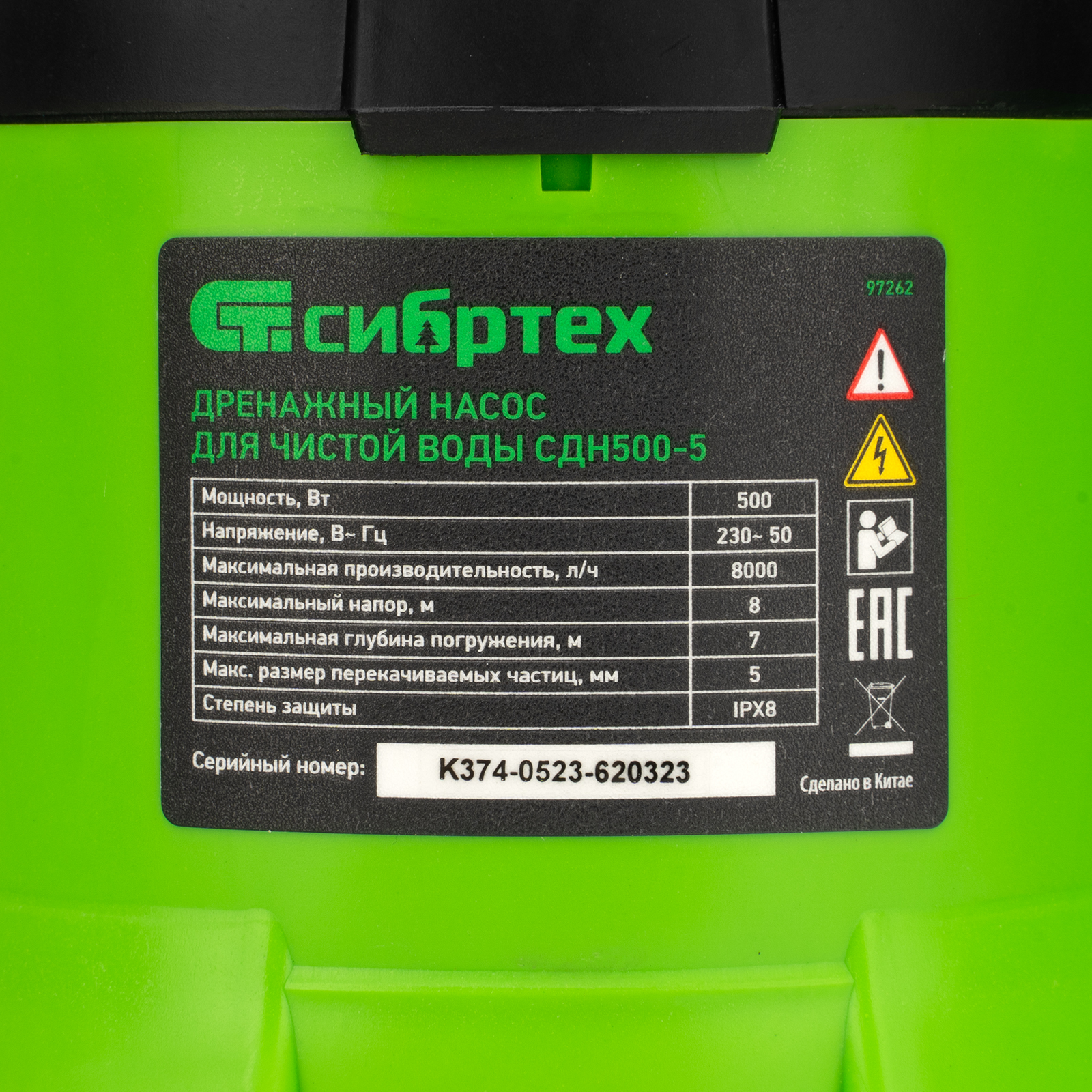 ПроизводителиНасос дренажный для чистой воды СДН500-5, 500 Вт, напор 8 м, 8000 л/ч Сибртех