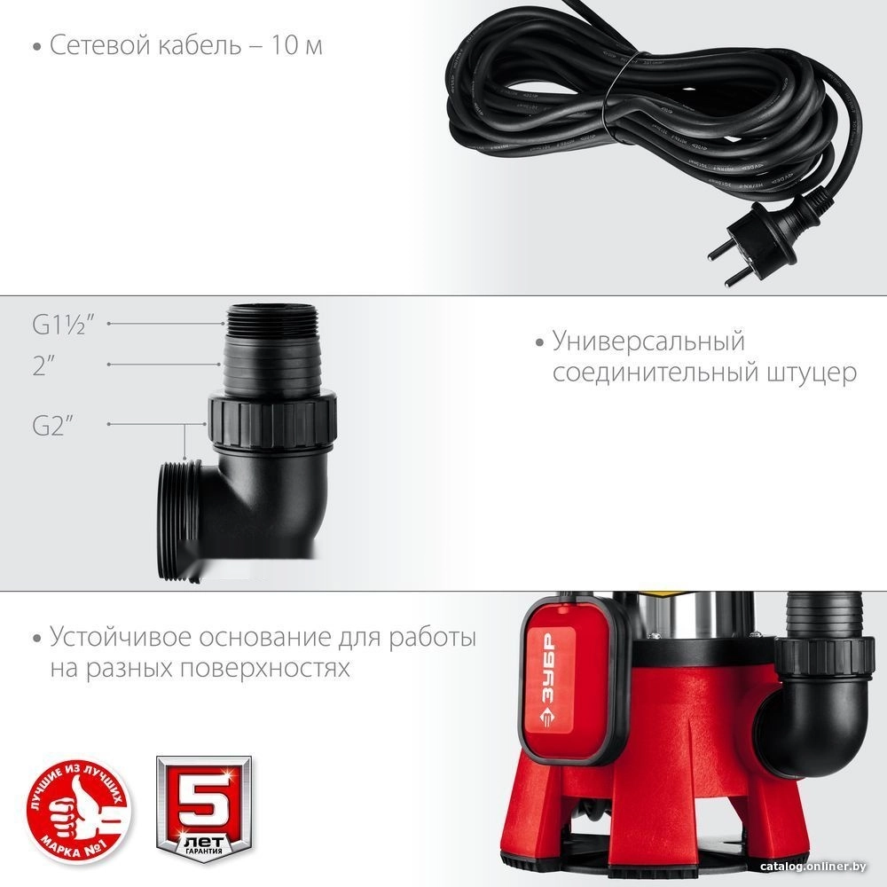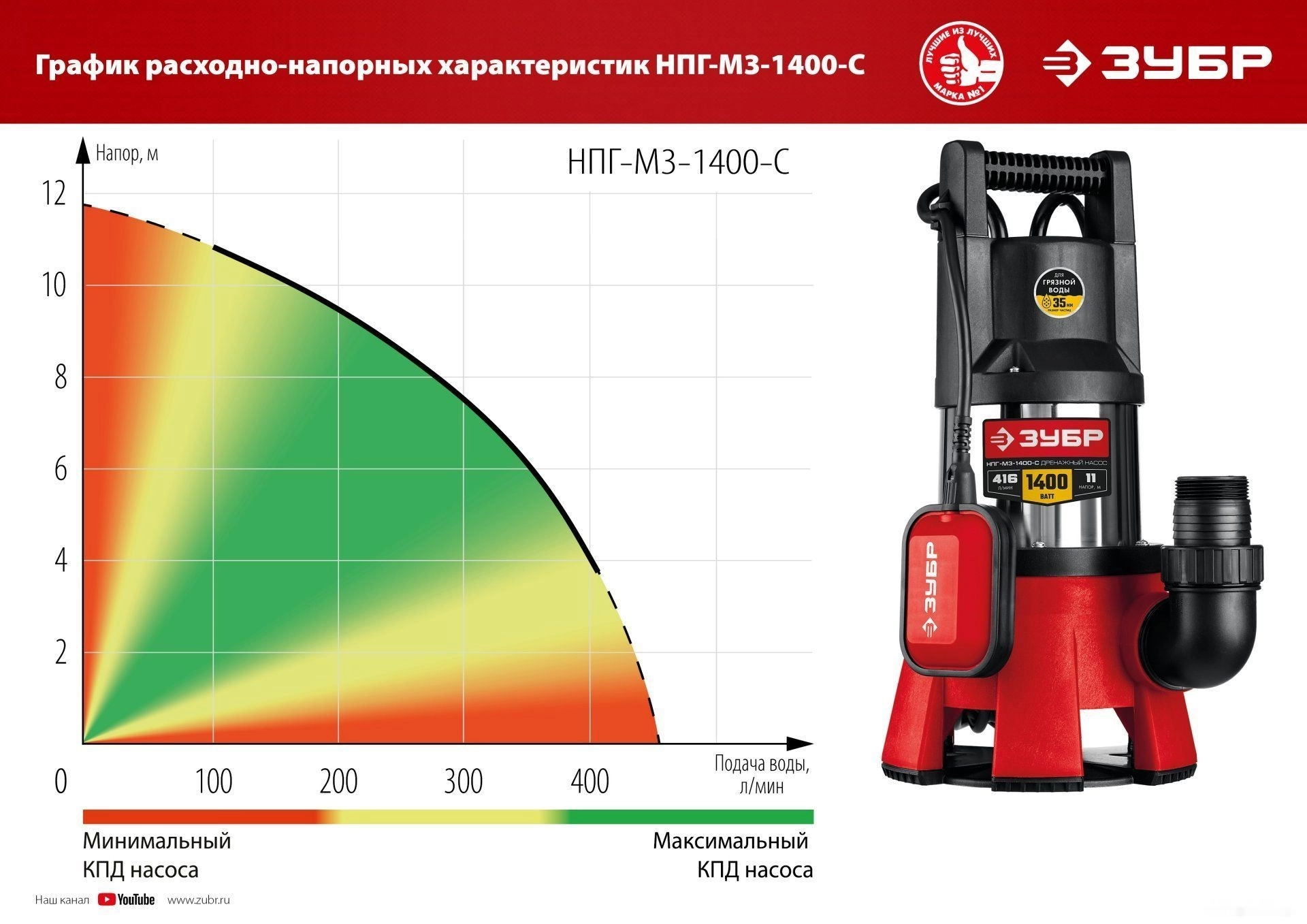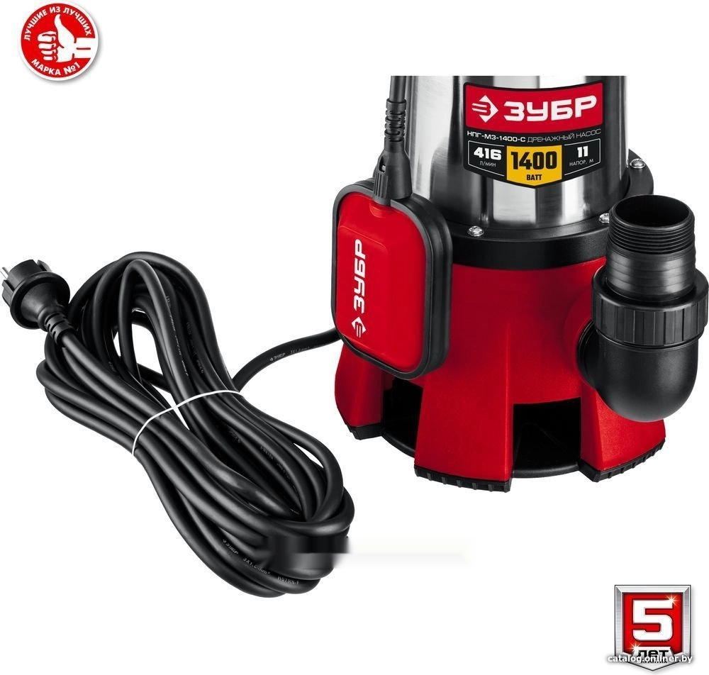 ПроизводителиНасос дренажный для грязной воды, корпус - нерж. сталь, 1400 Вт (НПГ-М3-1400-С) ЗУБР