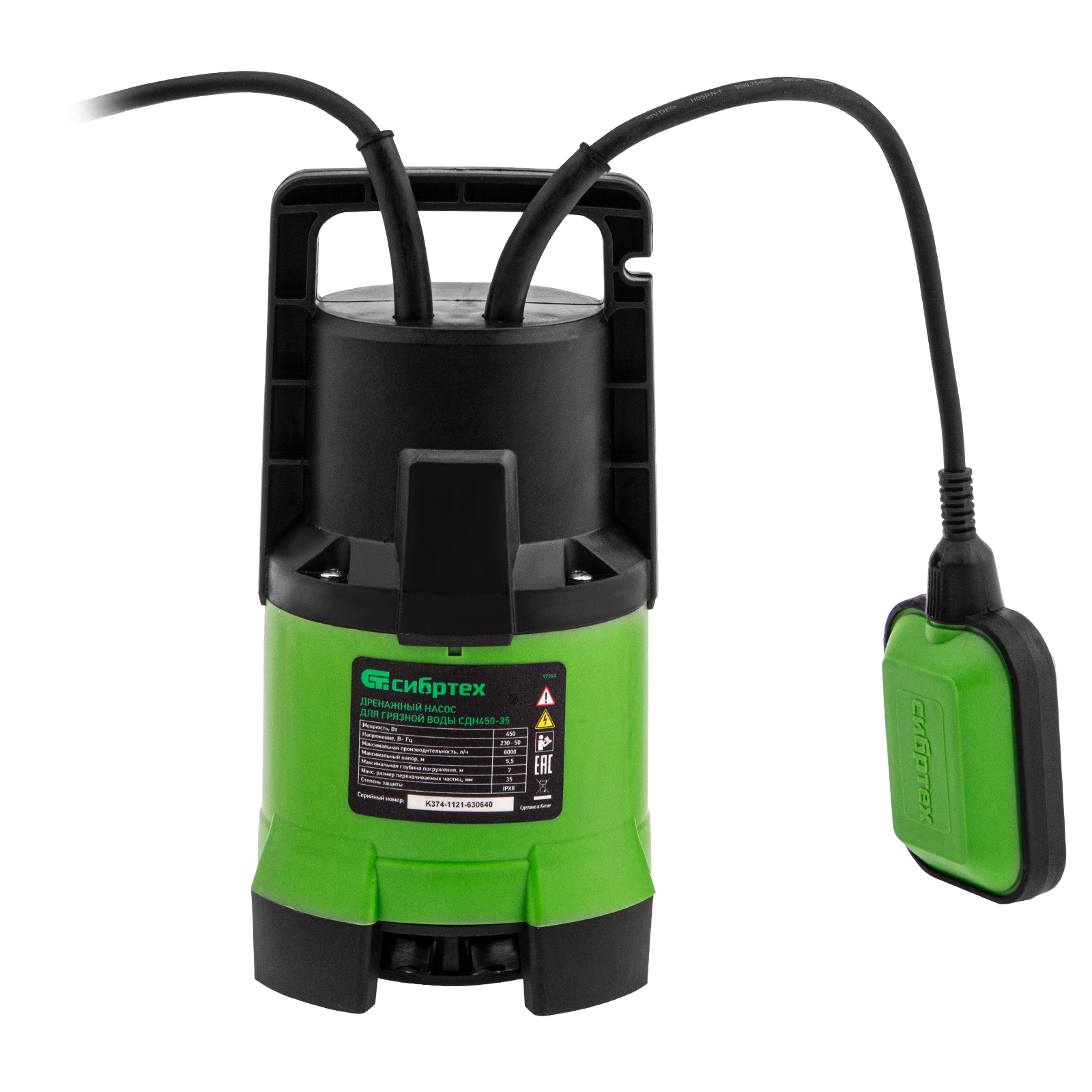 ПроизводителиНасос дренажный для грязной воды СДН450-35, 450 Вт, напор 5,5 м, 8000 л/ч Сибртех