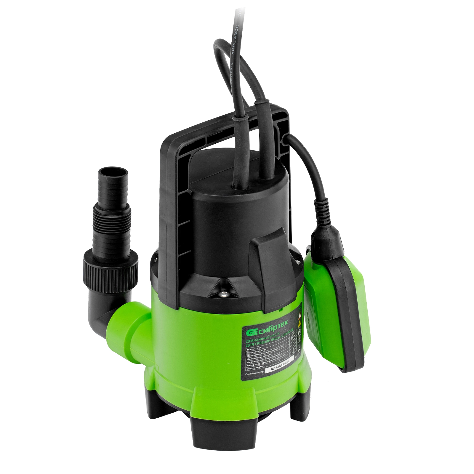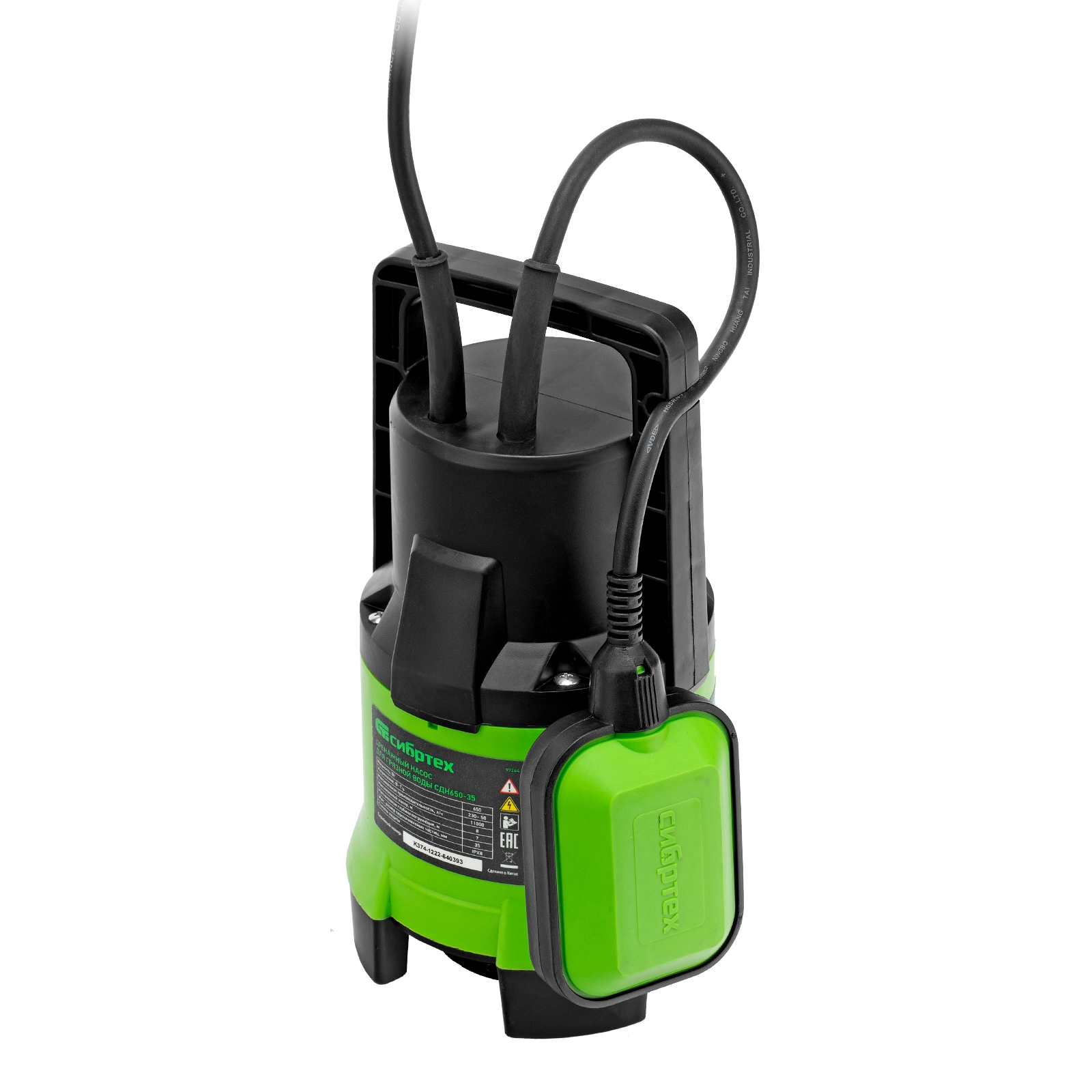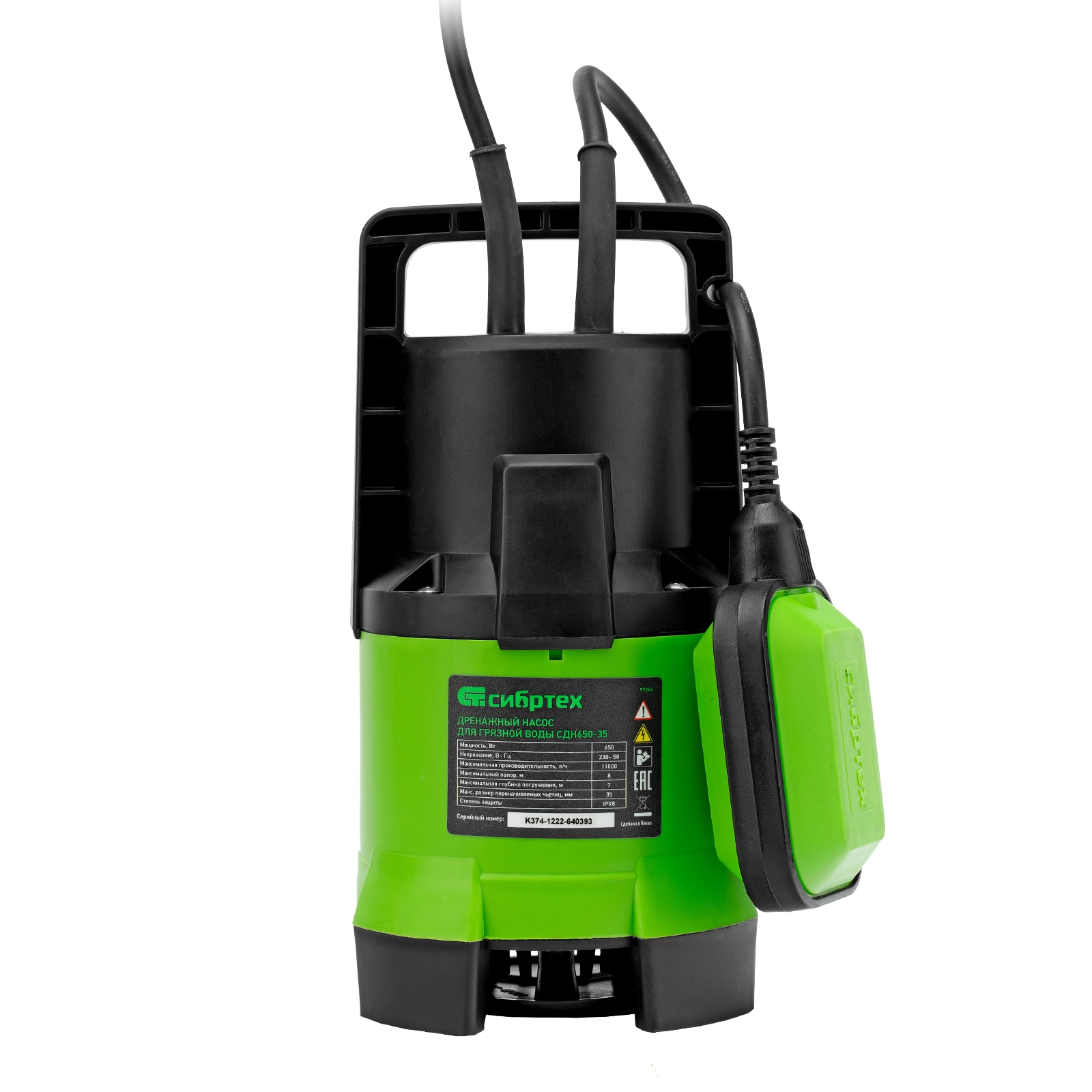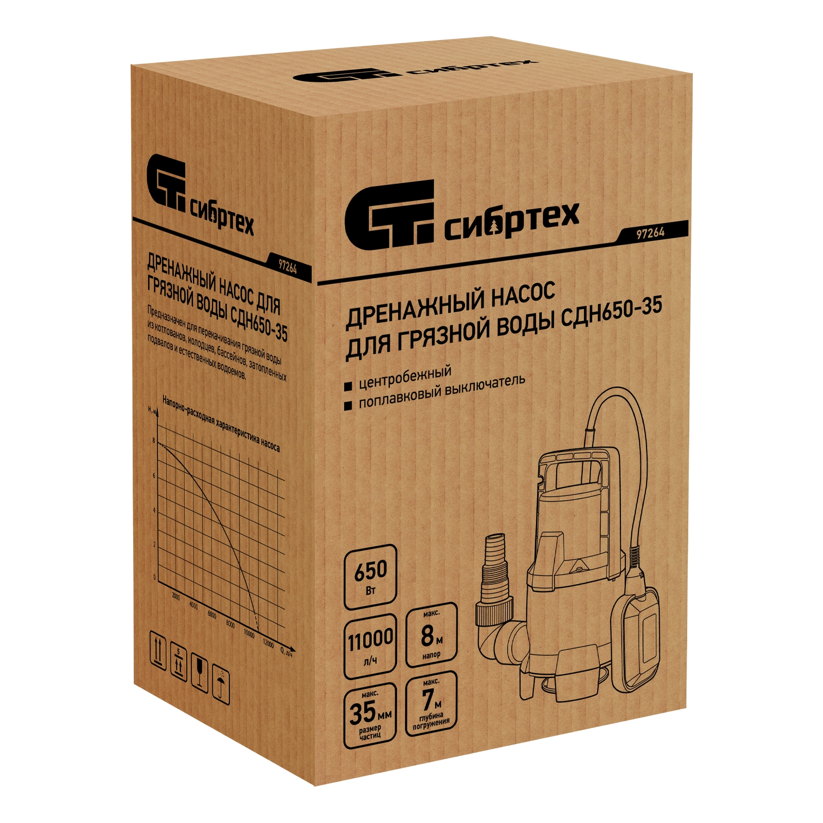 ПроизводителиНасос дренажный для грязной воды СДН650-35, 650 Вт, напор 8 м, 11000 л/ч Сибртех