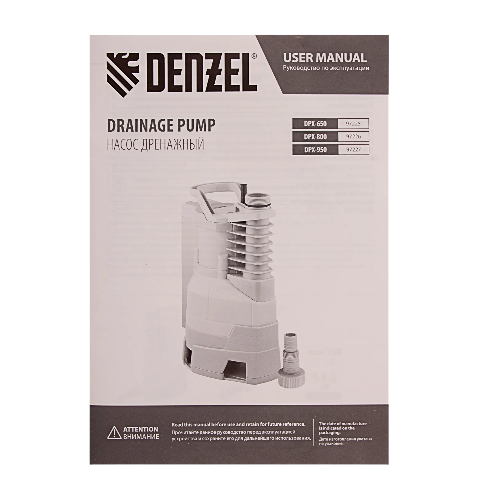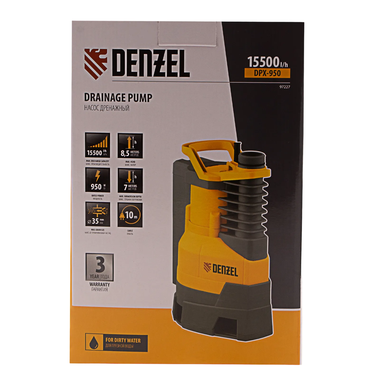 ПроизводителиНасос дренажный DPХ950, 950 Вт, подъем 8,5 м, 15500 л/ч Denzel