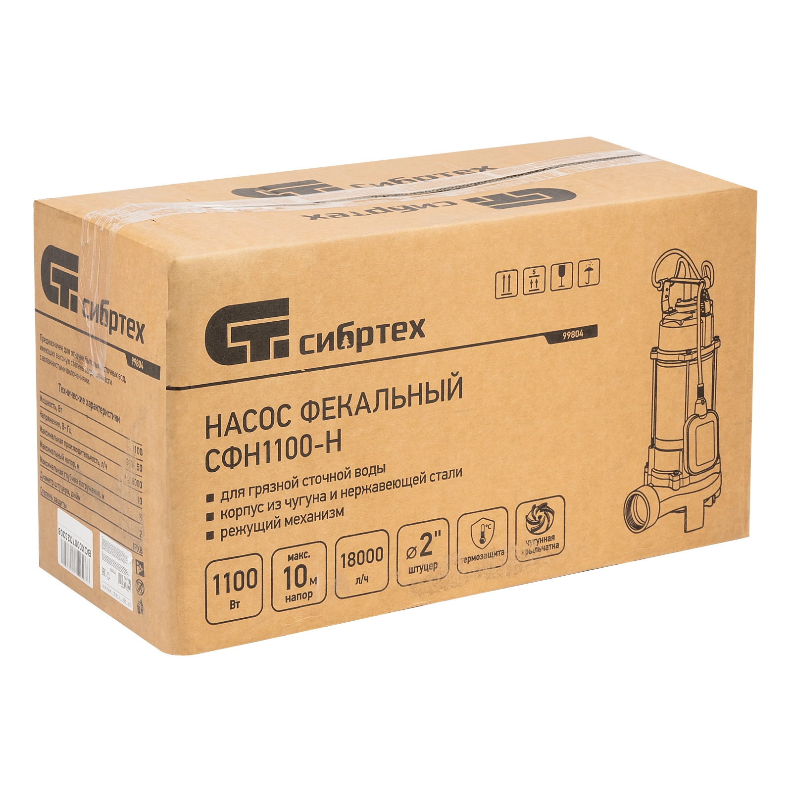 Насос фекальный СФН1100-Н, 1100 Вт, напор 10 м, 18000 л/ч, нож Сибртех