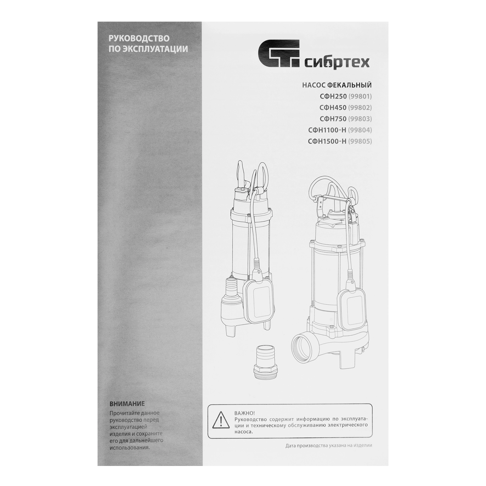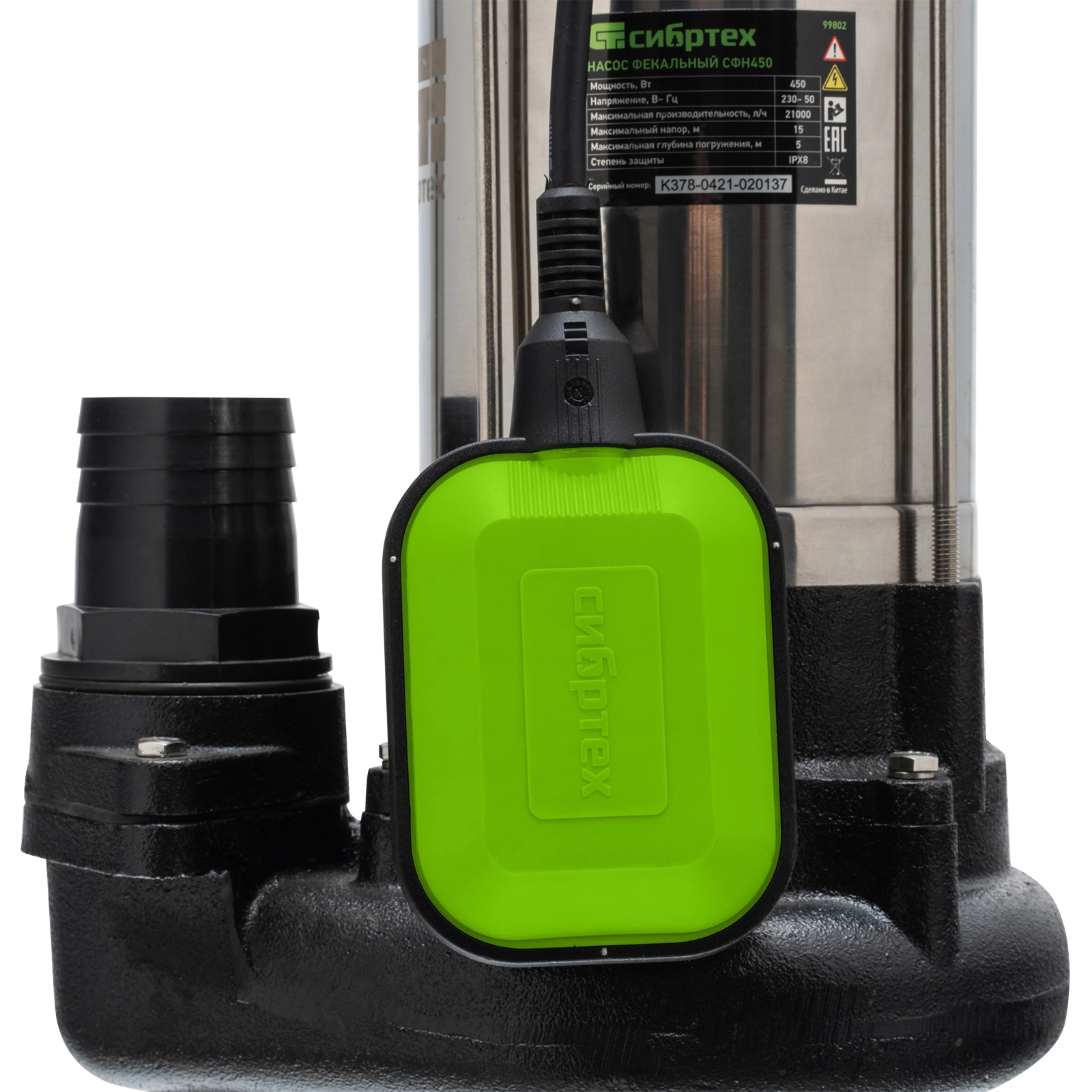 ПроизводителиНасос фекальный СФН450, 450 Вт, напор 15 м, 21000 л/ч Сибртех