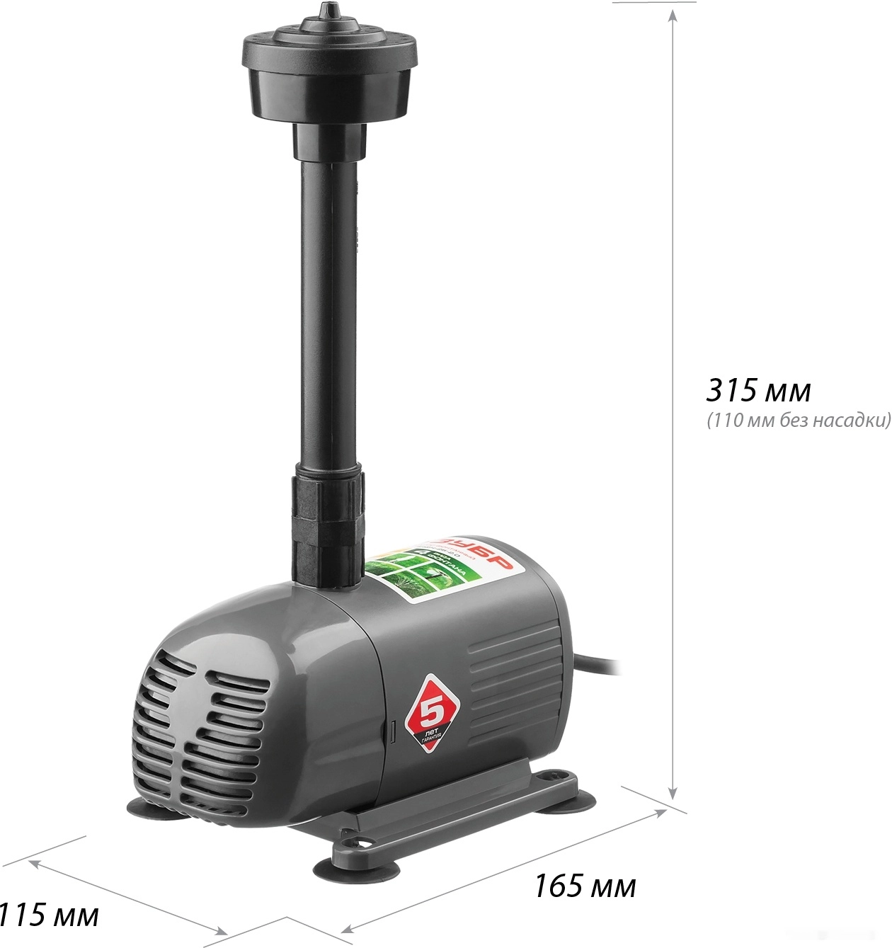 ХарактеристикиАртикул ЗНФЧ-25-2.0Бренды ЗубрСтрана производства КитайТип фонтанныйПотребляемая мощность 38Назначение водоснабжениеМатериал корпуса пластикПроизводительность 1.5Напряжение 220Глубина погружения 3Длина сетевого шнура 10Вес 2Метод установки погружнойНапор 2Размер пропускаемых частиц 2Длина 165Ширина 115Высота 315Длина кабеля 10Качество воды чистаяОписание товара обновлено 08.12.2025 15:15:49Простое средство для украшения сада. Обычный пруд с установкой насоса превращается в фонтан, причем, благодаря сменным насадкам, форма струи легко меняется между "гейзером", "каскадом" и "колокольчиком", а также может переключаться на водопад.