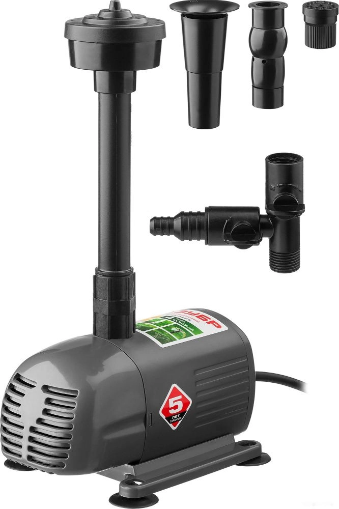 ПроизводителиНасос фонтанный ЗНФЧ-33-2.5, для чистой воды, напор 2,5 м, насадки: колокольчик, гейзер, каска ЗУБР