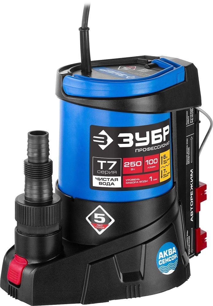 ПроизводителиНасос погружной, дренажн. для чистой воды, 250 Вт, мин. уровень 1мм, провод 10 м (НПЧ-Т7-250) ЗУБР