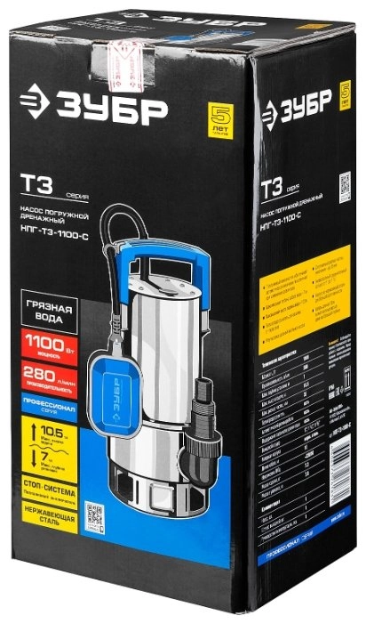 ХарактеристикиАртикул НПГ-Т3-1100-СБренды ЗубрСтрана производства КитайТип дренажныйПотребляемая мощность 1100Производительность 16.8Напряжение 220Глубина погружения 7Длина сетевого шнура 10Вес 7.1Максимальный напор 10.5Метод установки погружнойРазмер пропускаемых частиц 35Длина кабеля 10Качество воды грязнаяЗащита от сухого хода ДаОписание товара обновлено 08.12.2025 15:16:53Автоматическое включение и выключение, термопредохранитель для защиты двигателя, высокие эксплуатационные свойства и простота конструкции обеспечивают надёжное и безопасное применение для перекачивания чистой воды на садовых участках, при осушении ёмкостей и водоёмов, организации забора воды с глубины (колодцы, скважины) и подачи на высоту, использовании в системах аэрации и дренажа.