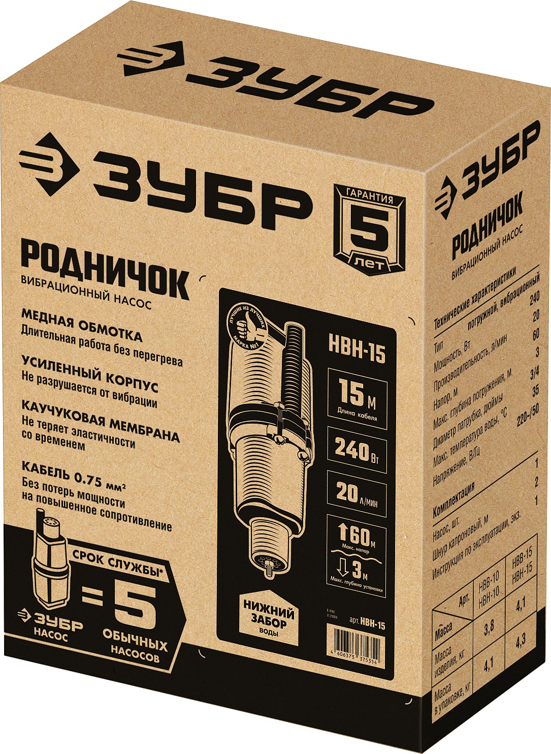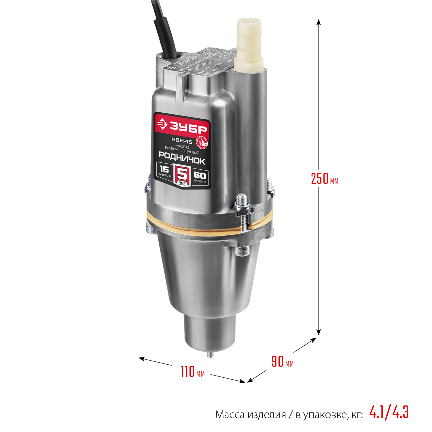 ПроизводителиНасос погружной вибрационный "Родничок" (нижний забор воды 15м) НВН-15 ЗУБР