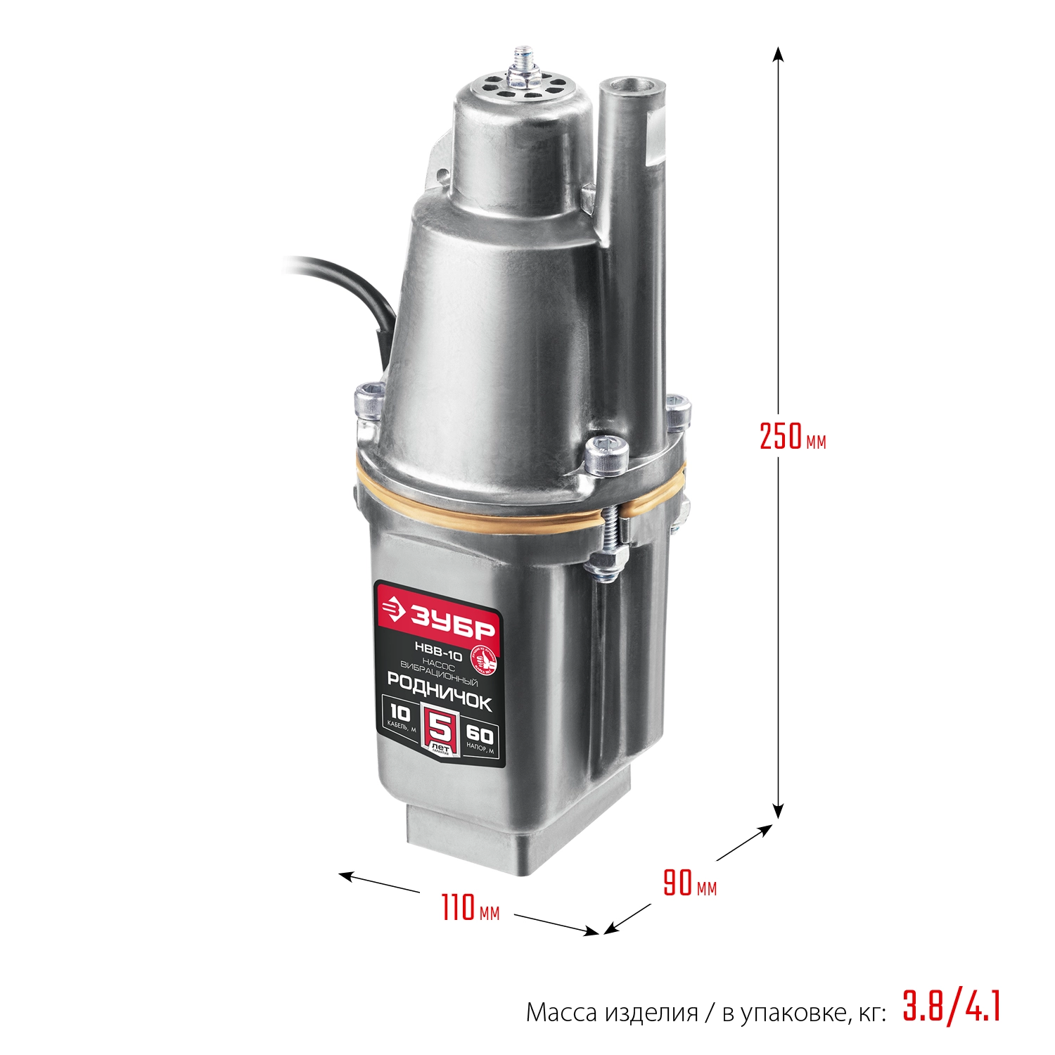 ПроизводителиНасос погружной вибрационный "Родничок" (верхний забор воды 10м) НВВ-10 ЗУБР
