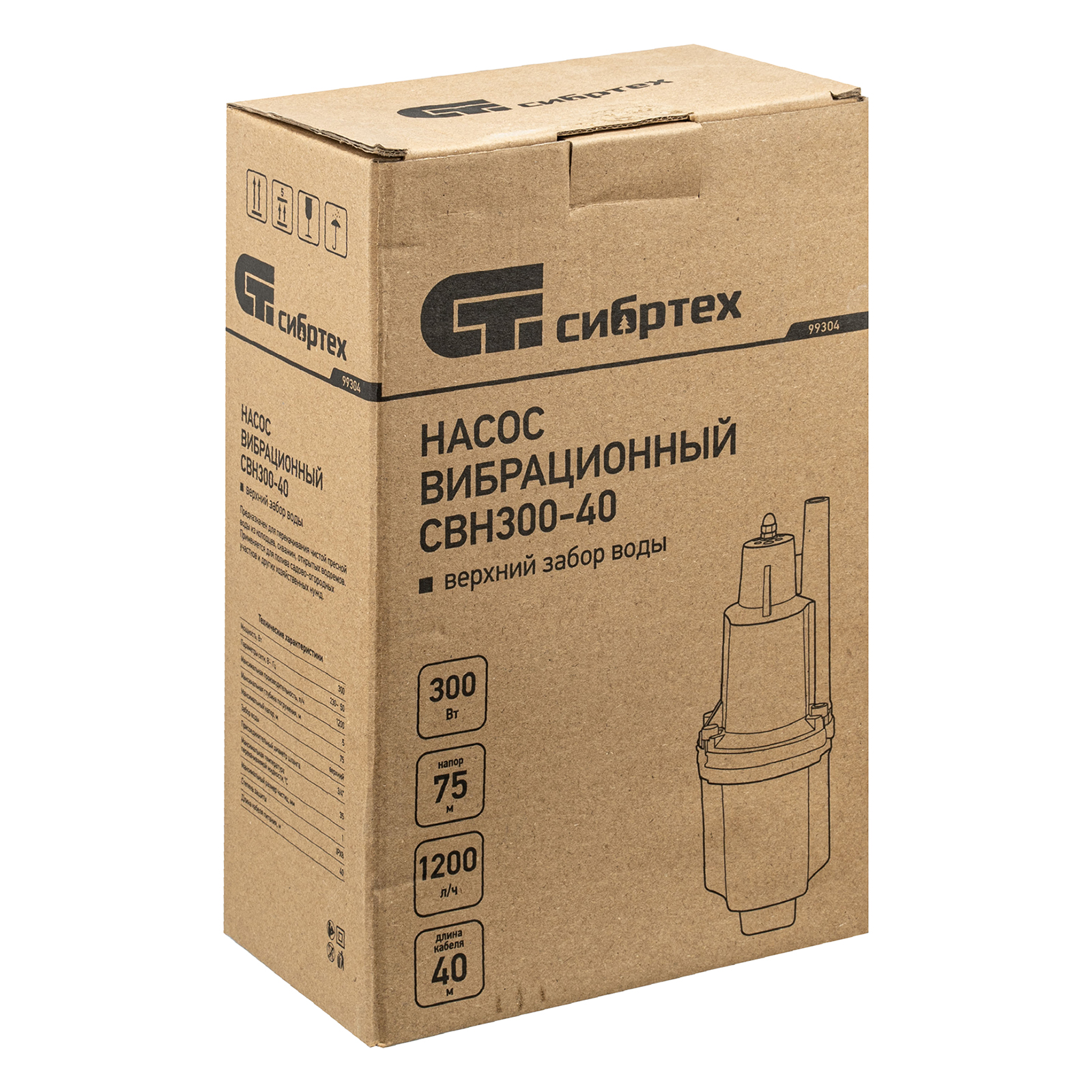 ПроизводителиНасос погружной вибрационный СВН300-40 (0.3кВт, 1200 л/час, погр/подъем 5/75м, верх. забор) СИБРТЕХ