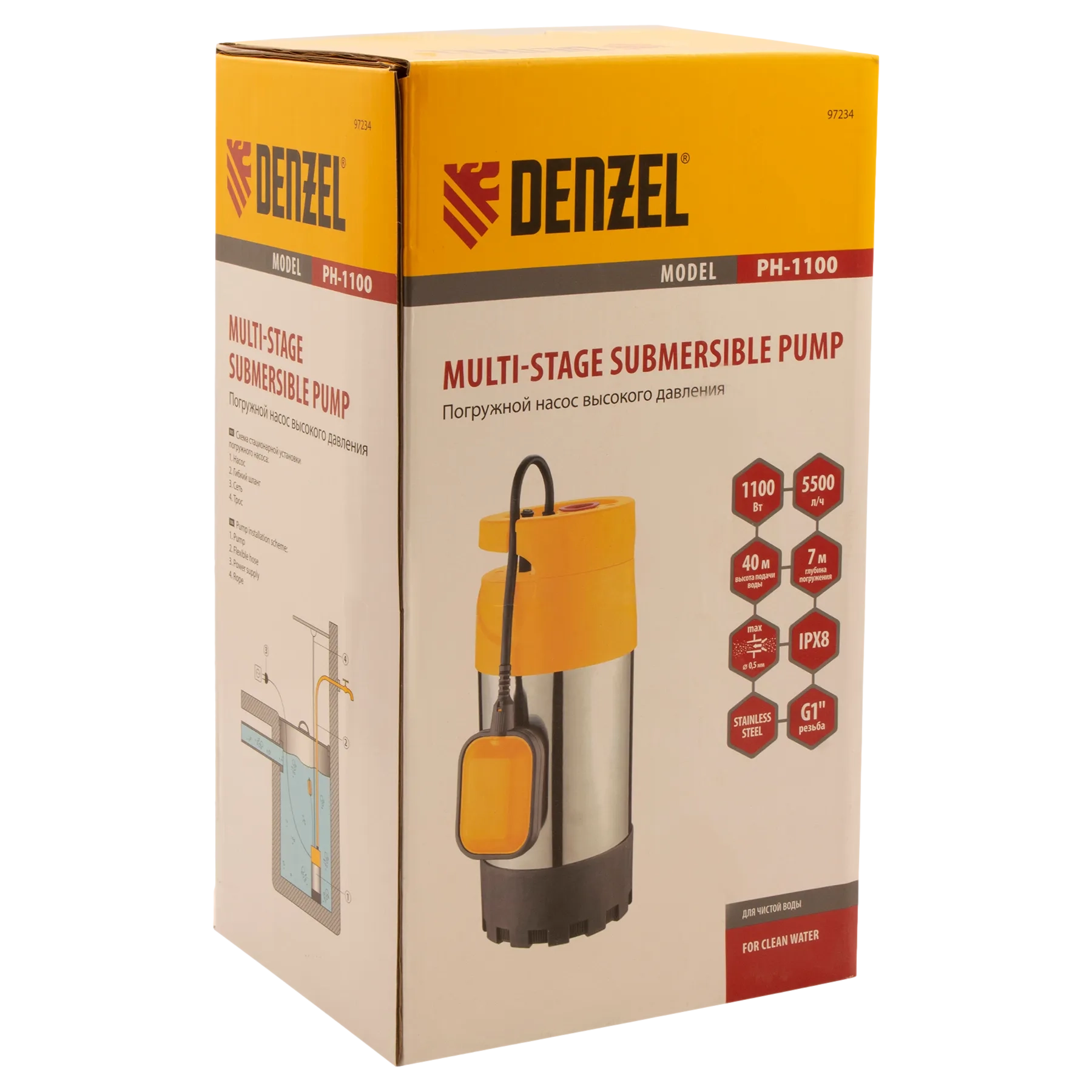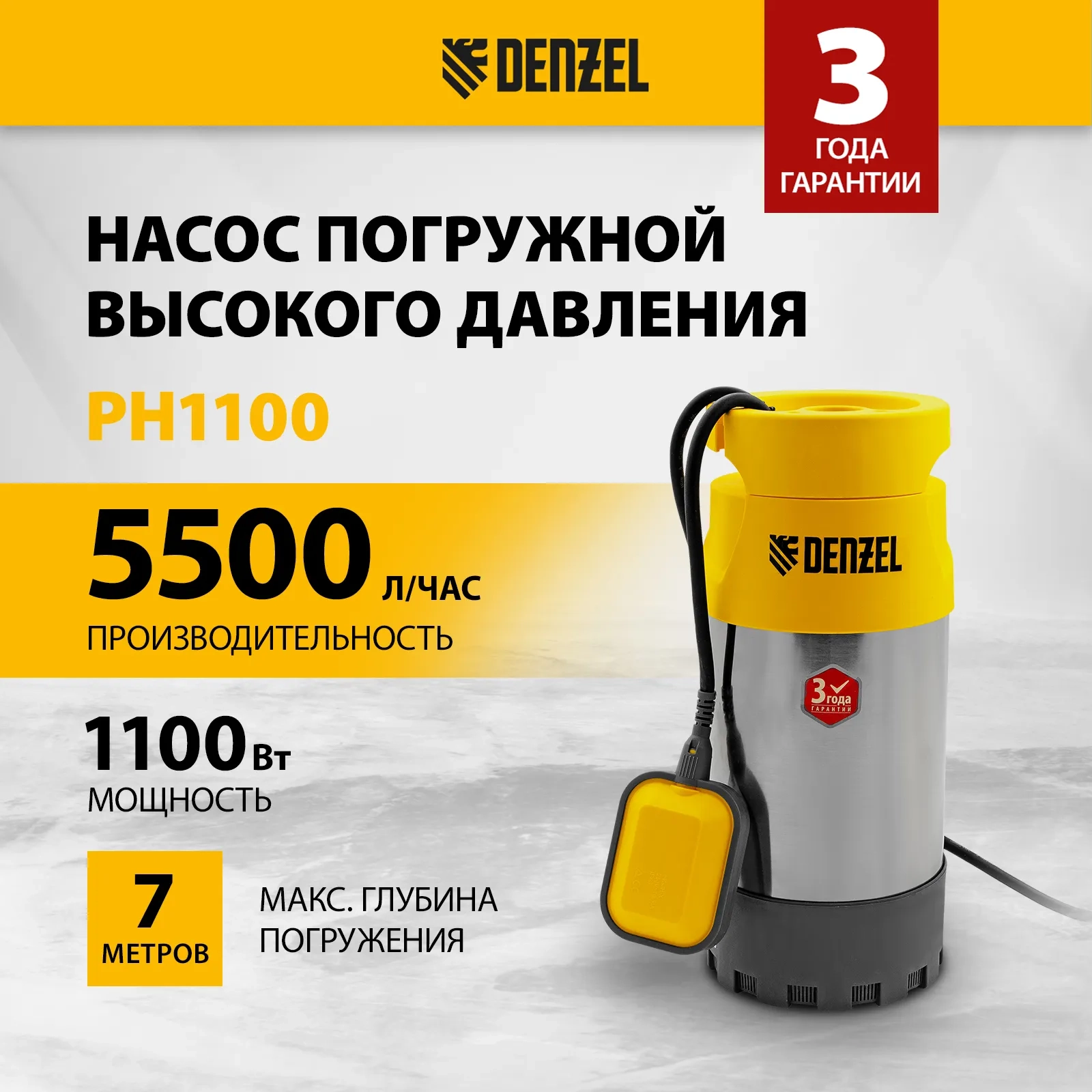 ПроизводителиНасос погружной высокого давления PH1100, 1100Вт, подъем 40м, 5500 л/ч Denzel
