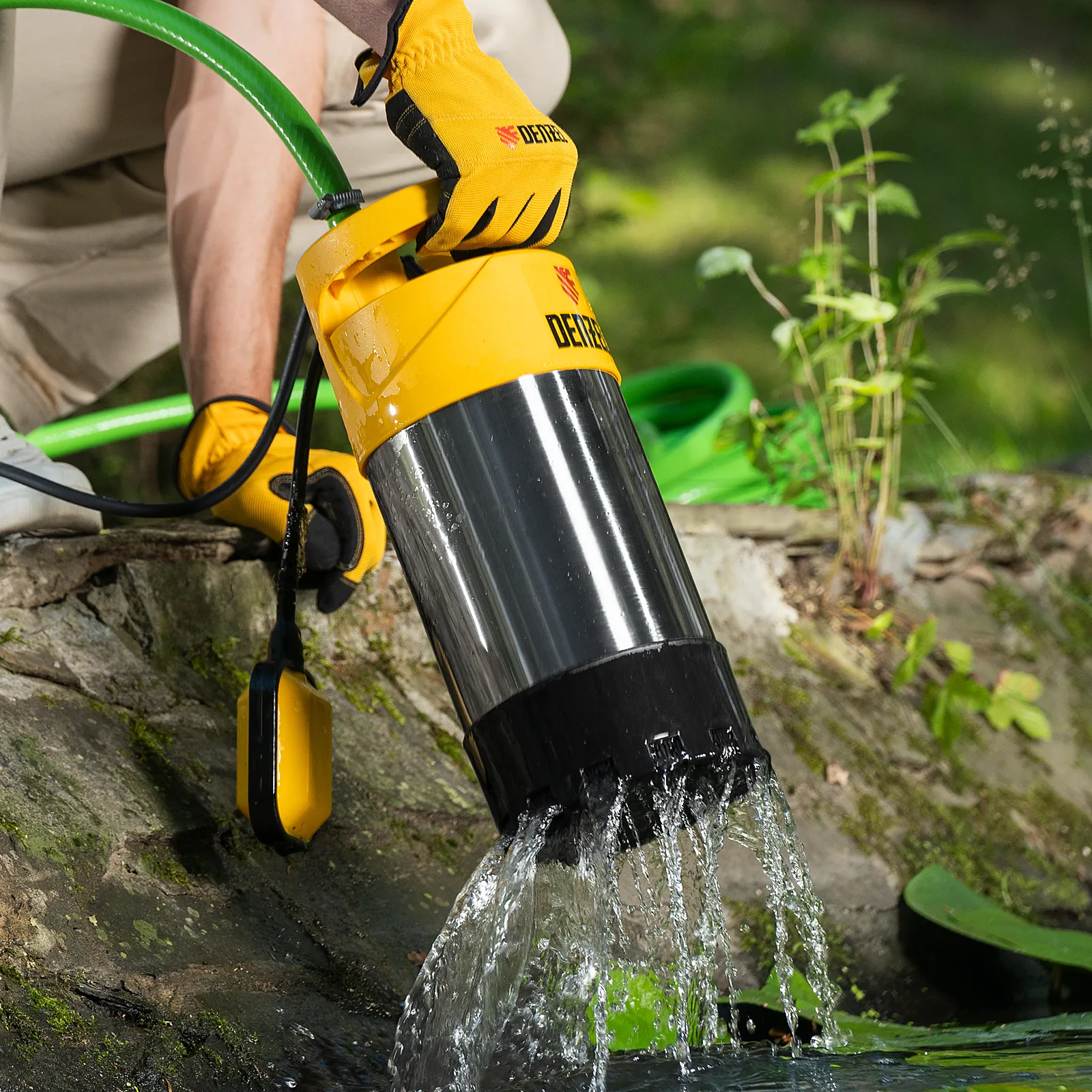 Погружной насос Denzel PH1100 97234 мощностью 1100 Вт и производительностью 5500 л/ч создает напор до 40 м и используется для подачи чистой воды под давлением до 4 бар из резервуара, водоема и колодца, даже если он находится далеко от участка.