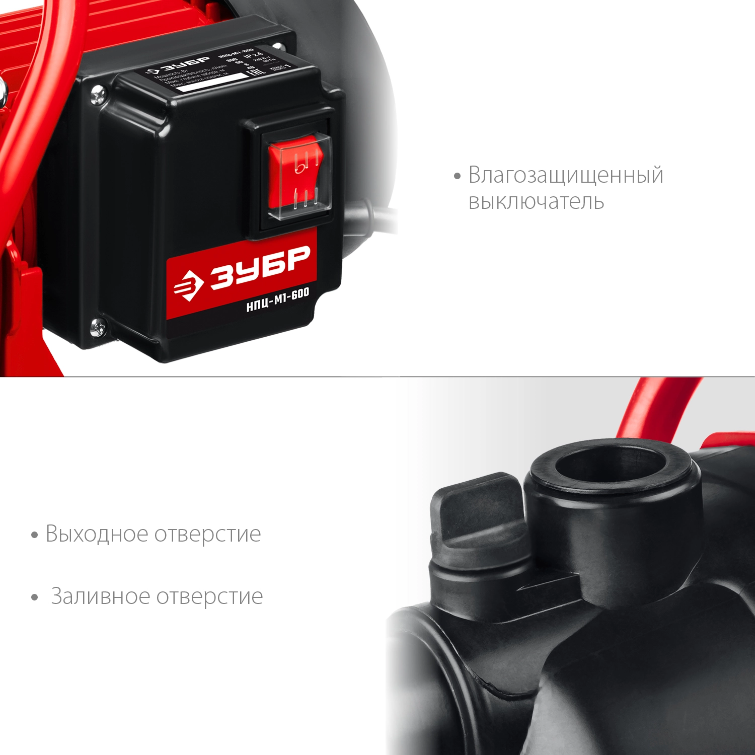 ПроизводителиНасос поверхностный садовый центробежный 600 Вт (НПЦ-М1-600) ЗУБР