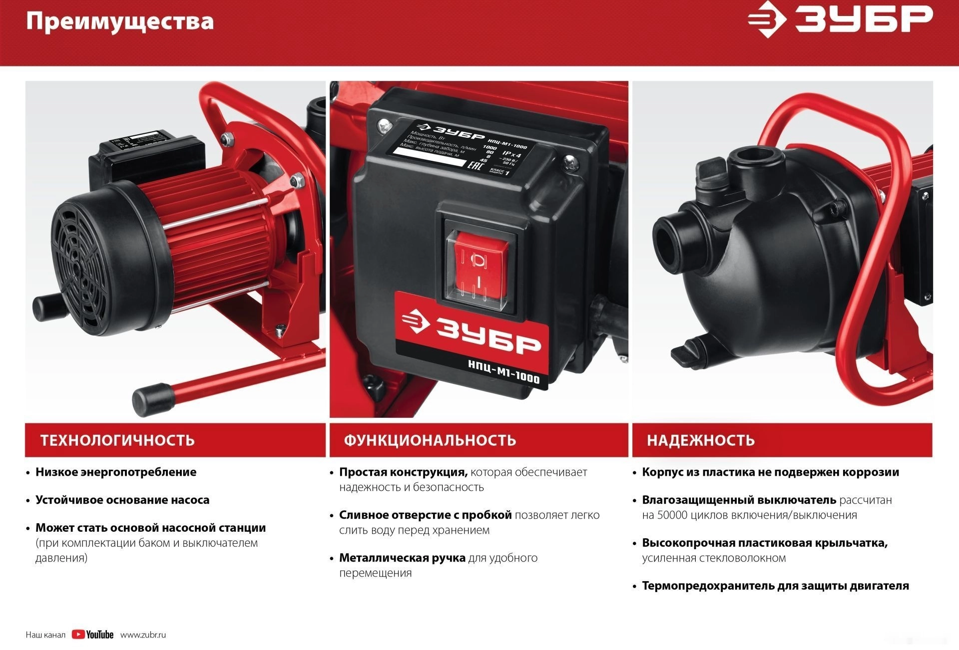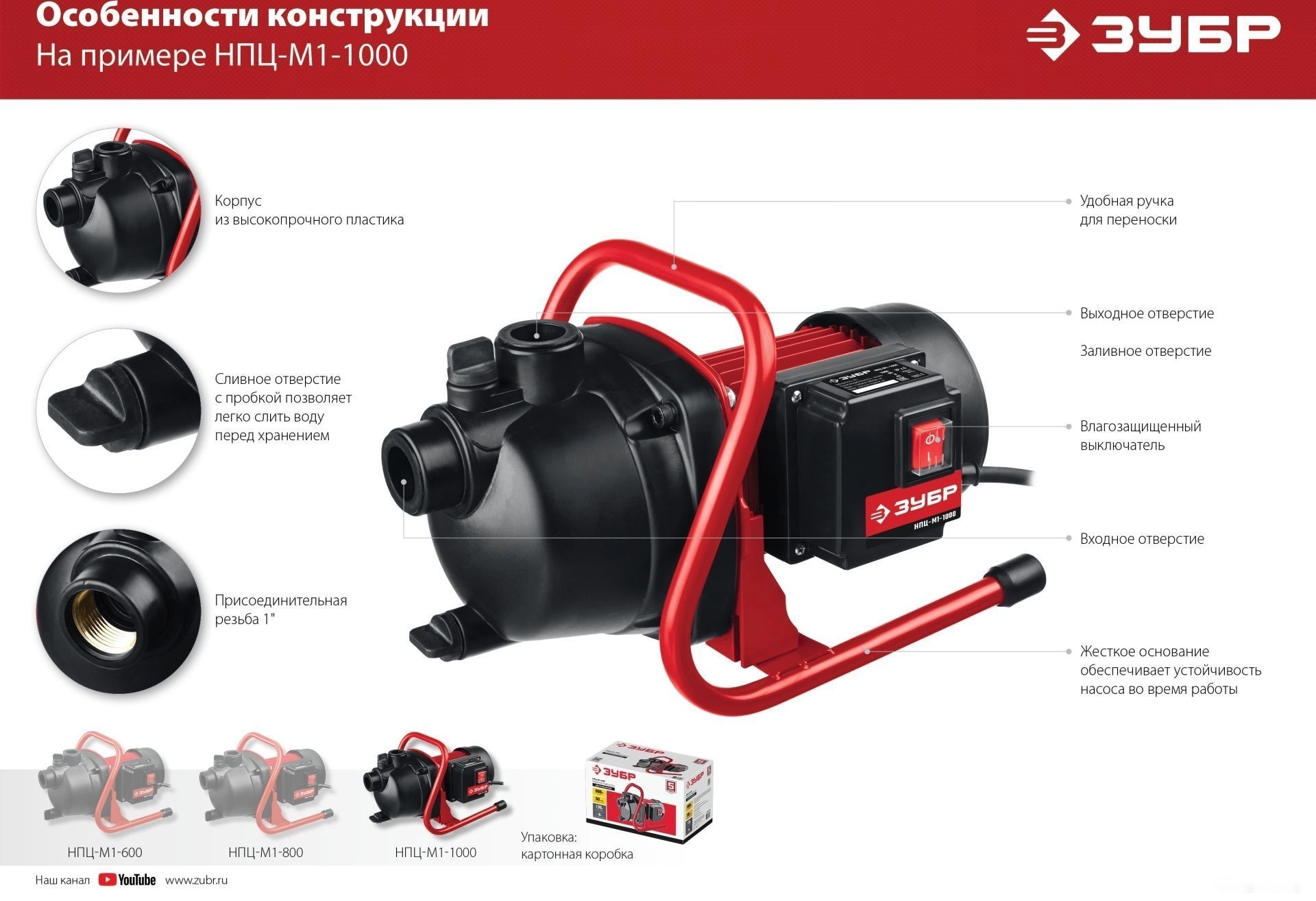 ПроизводителиНасос поверхностный центробежный НПЦ-М1-1000 (1000 Вт, 80 л/мин, 5 атм.) ЗУБР