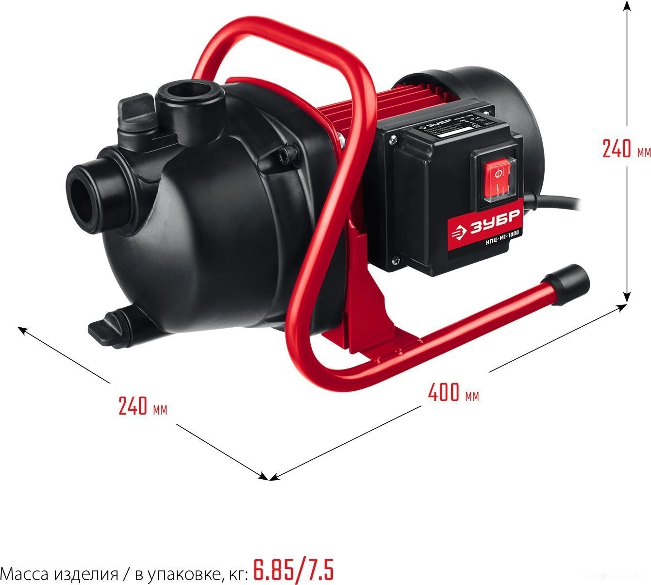 ХарактеристикиАртикул НПЦ-М1-1000Бренды ЗубрСтрана производства КитайТип самовсасывающийПотребляемая мощность 1000Назначение водоснабжениеМатериал корпуса пластикПроизводительность 4.8Напряжение 220Вес 6.85Метод установки поверхностныйНапор 45Давление 4.5Размер пропускаемых частиц 5Глубина до зеркала воды 8Длина 400Ширина 240Высота 240Качество воды загрязненнаяОписание товара обновлено 08.12.2025 15:26:54Насос садовый поверхностный ЗУБР НПЦ-М1-1000, предназначен для подачи чистой воды из колодцев, резервуаров и открытых водоемов в дом, для полива садовых участков, огородов и приусадебных участков. Однофазный двигатель имеет защиту от перегрузки. Насос может стать основой насосной станции (при комплектации баком и выключателем давления). Имеется влагозащищенный выключатель. Предусмотрена удобная ручка для переноски агрегата.Производитель: Крафтул И/Е Гмбх, Альтер Поствег Штр., Лоенинген, Германия