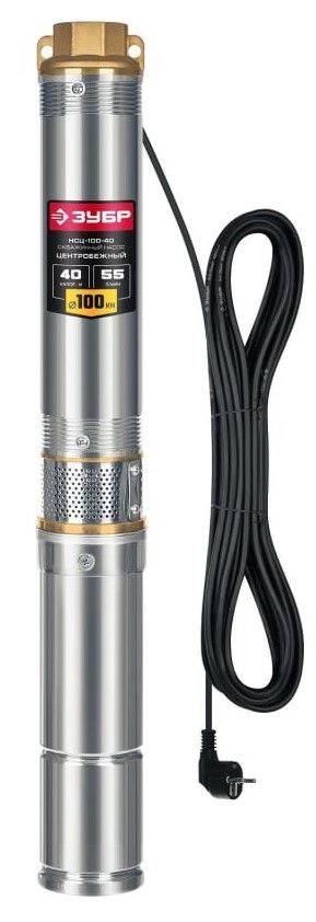 ХарактеристикиАртикул НСЦ-100-40Бренды ЗубрСтрана производства КитайТип скважинныйПотребляемая мощность 550Назначение водоснабжениеЦвет серебристыйМатериал корпуса нержавеющая стальТип двигателя электрическийГлубина погружения 70Длина сетевого шнура 20Вес 11.7Максимальный напор 40Метод установки погружнойФорма вертикальныйРазмер пропускаемых частиц 2Диаметр скважины 7Длина кабеля 20Класс защиты IP68Максимальная температура воды 35Вид насоса по типу забора воды нормально всасывающийТип питания электродвигателя от сетиОписание товара обновлено 08.12.2025 15:27:24Эффективное и простое решение для организации подачи воды в дом и для организации полива в саду.